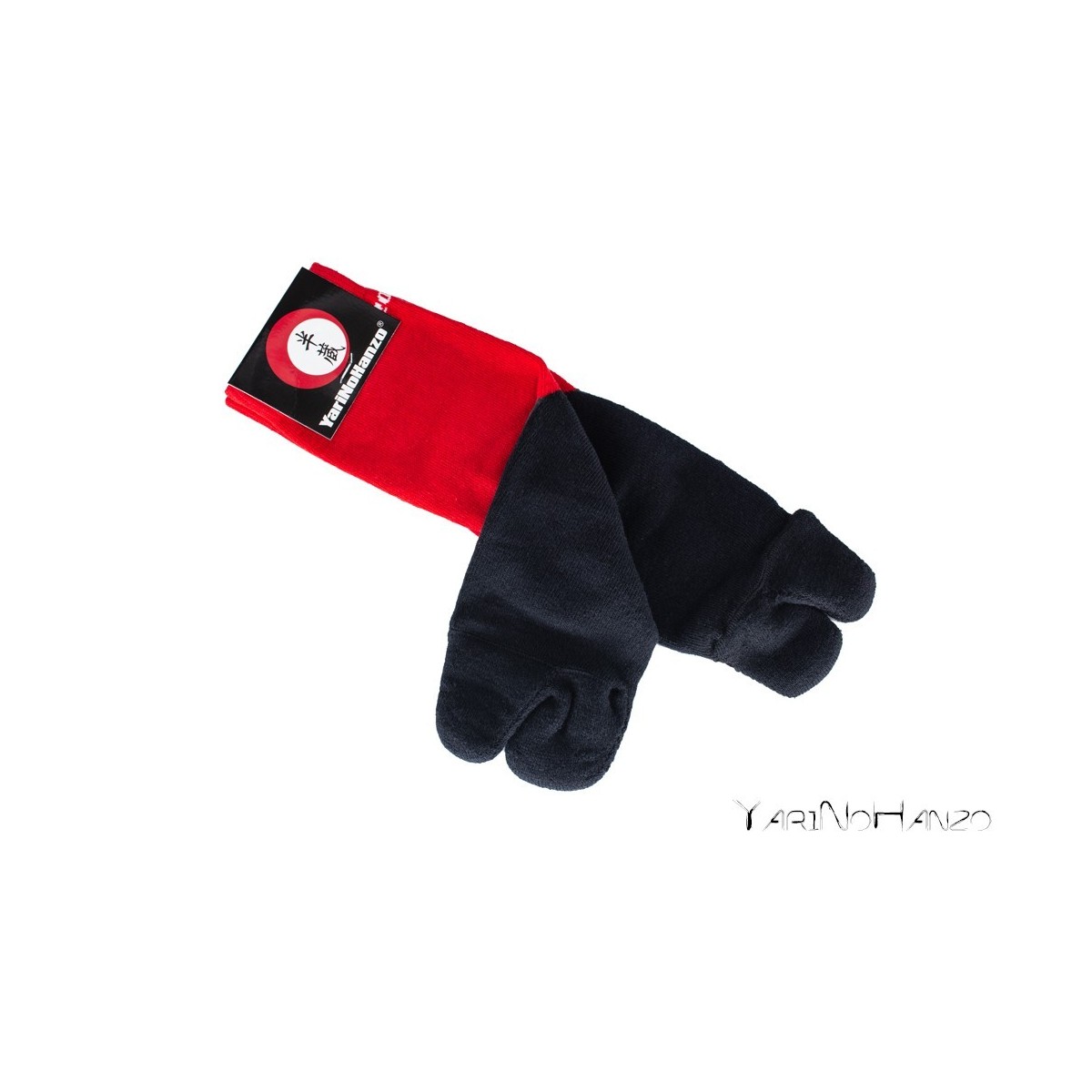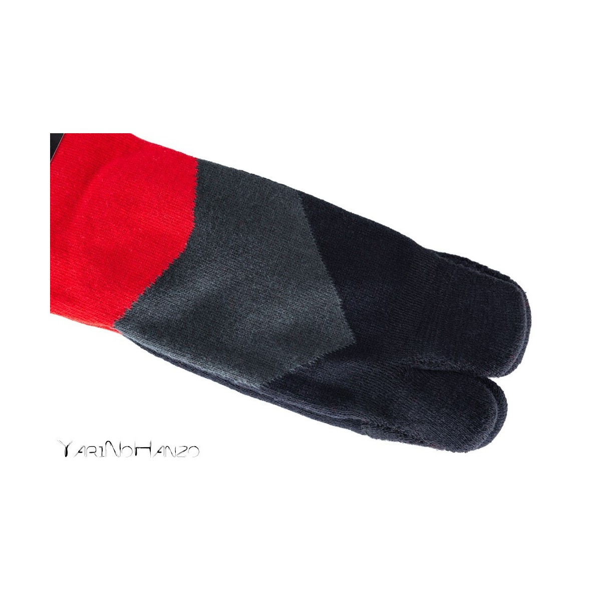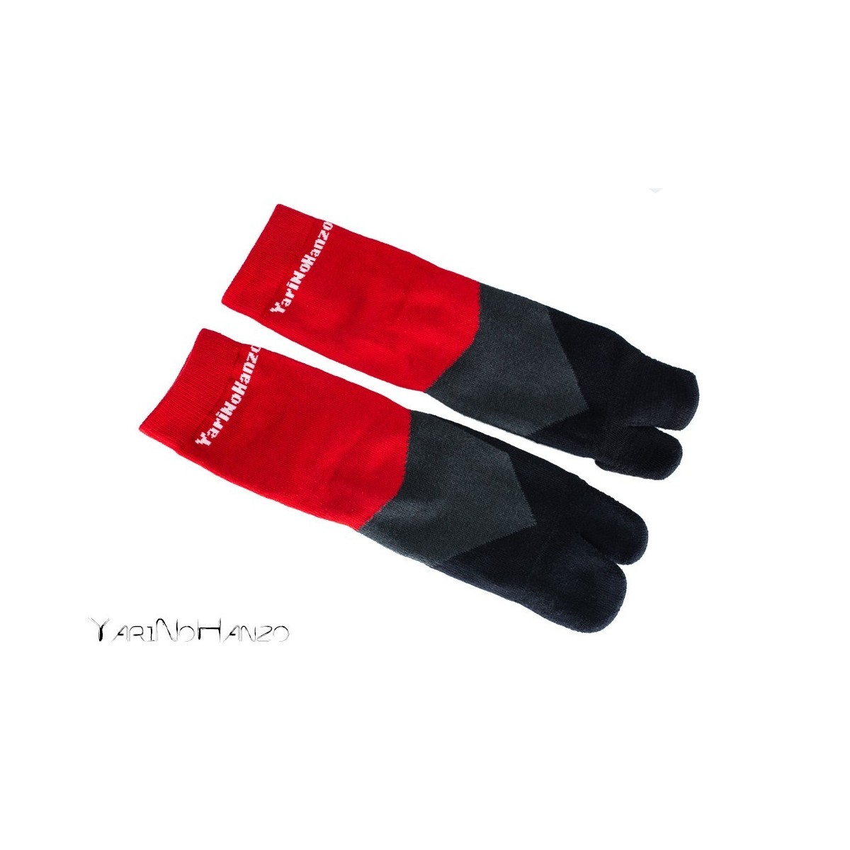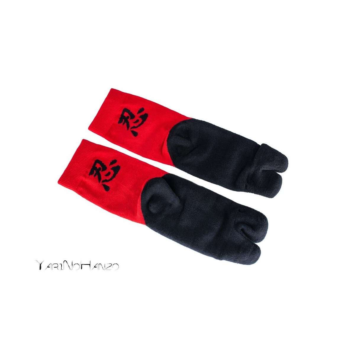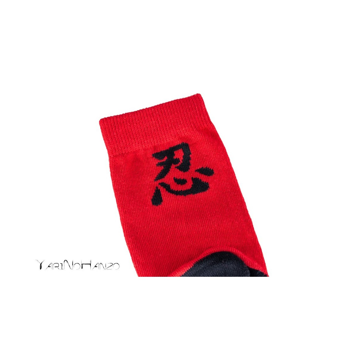 The socks are made of three colors: black, red and dark grey. They show the Kanji “NIN” in the back.