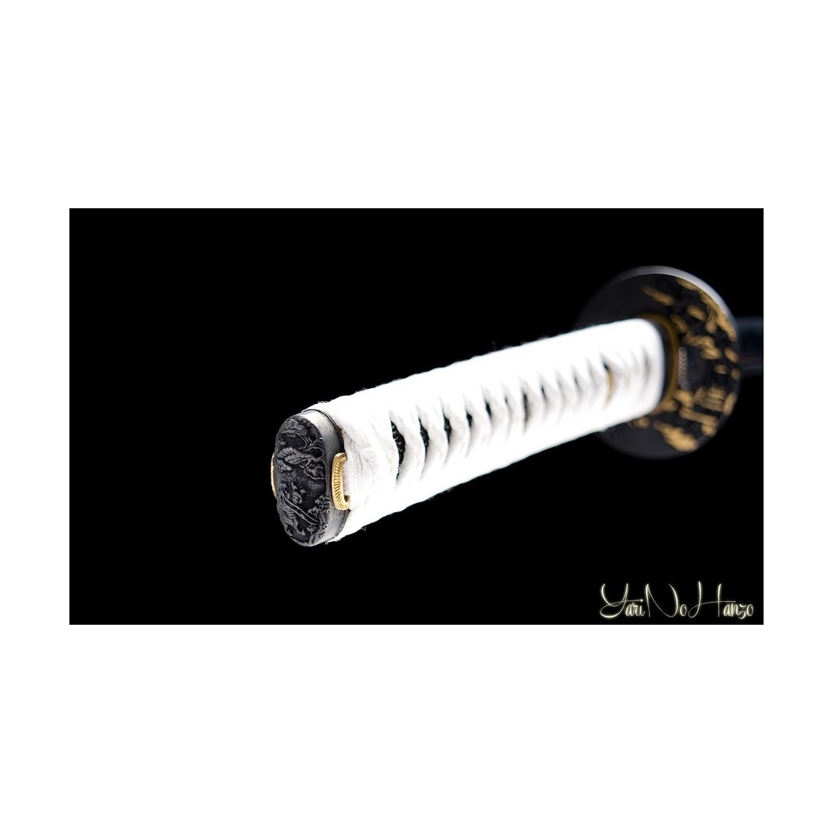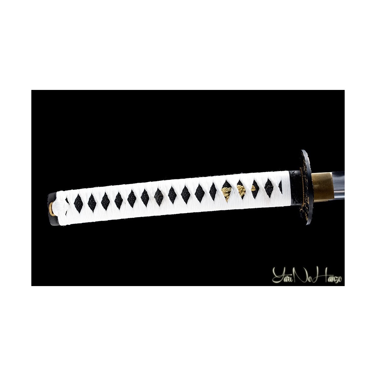 - Black-white lacquered wooden saya, white tsukaito and black ray skin