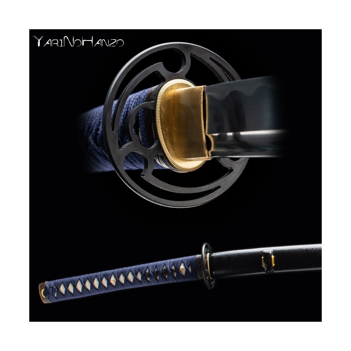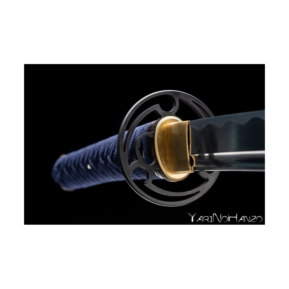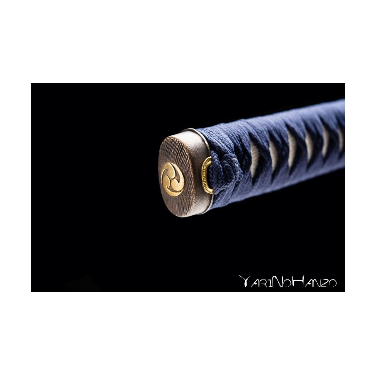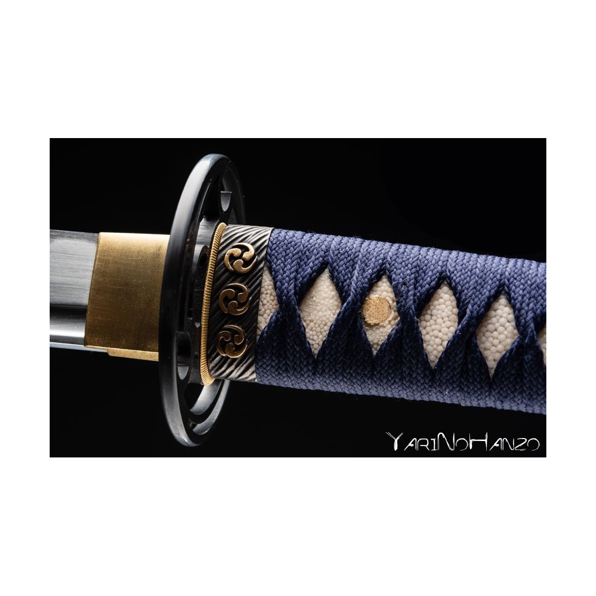 - Deep blue tsukaito and iron tsuba Tomoe style