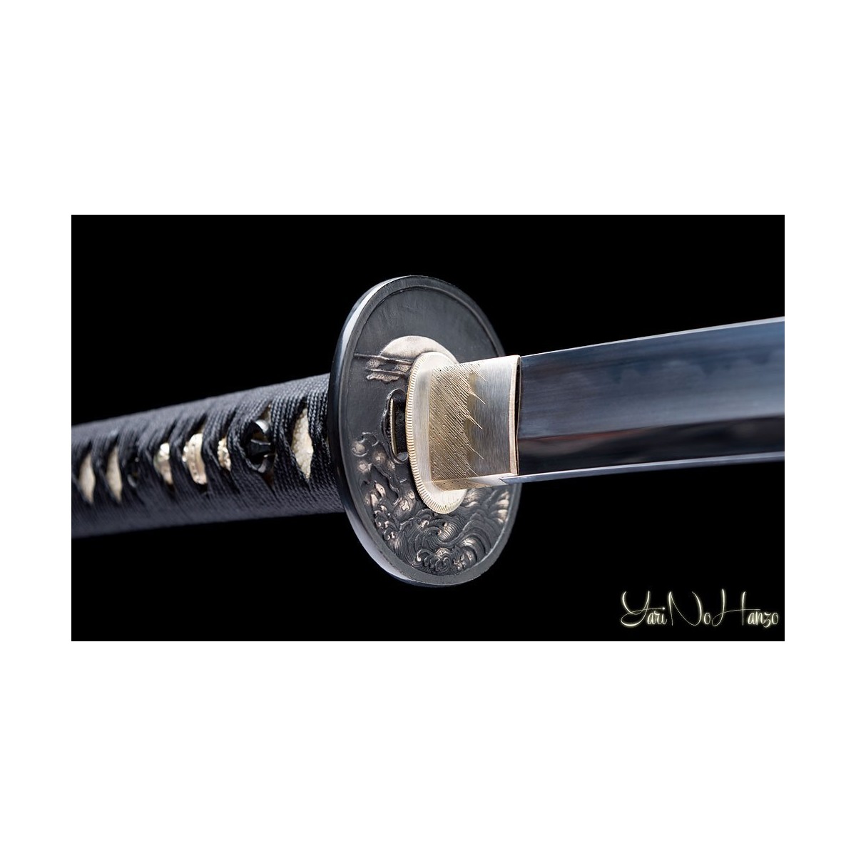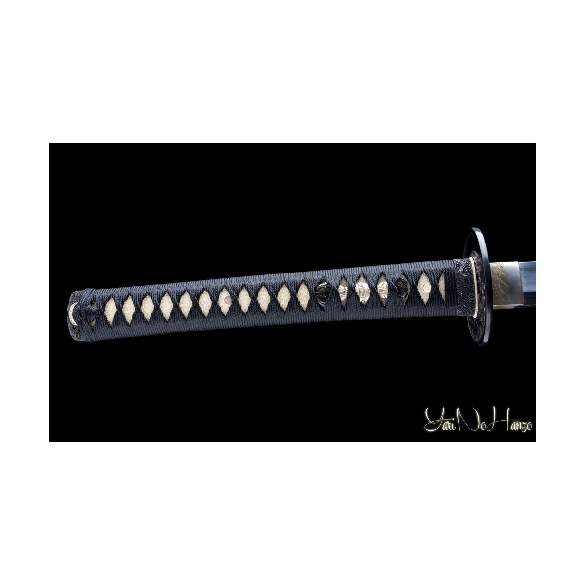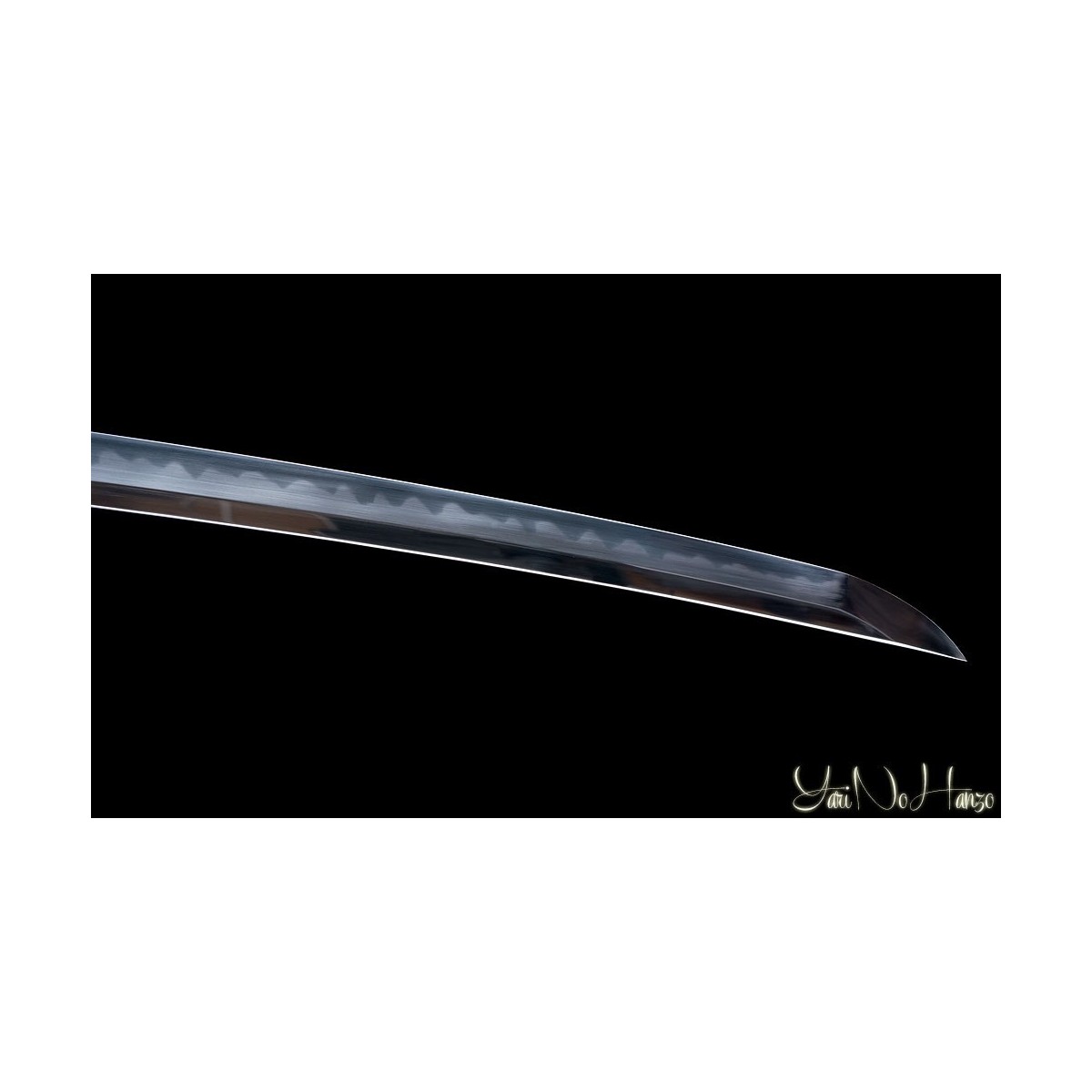 - Differentially hardened and clay tempered blade, authentic hamon Notare style