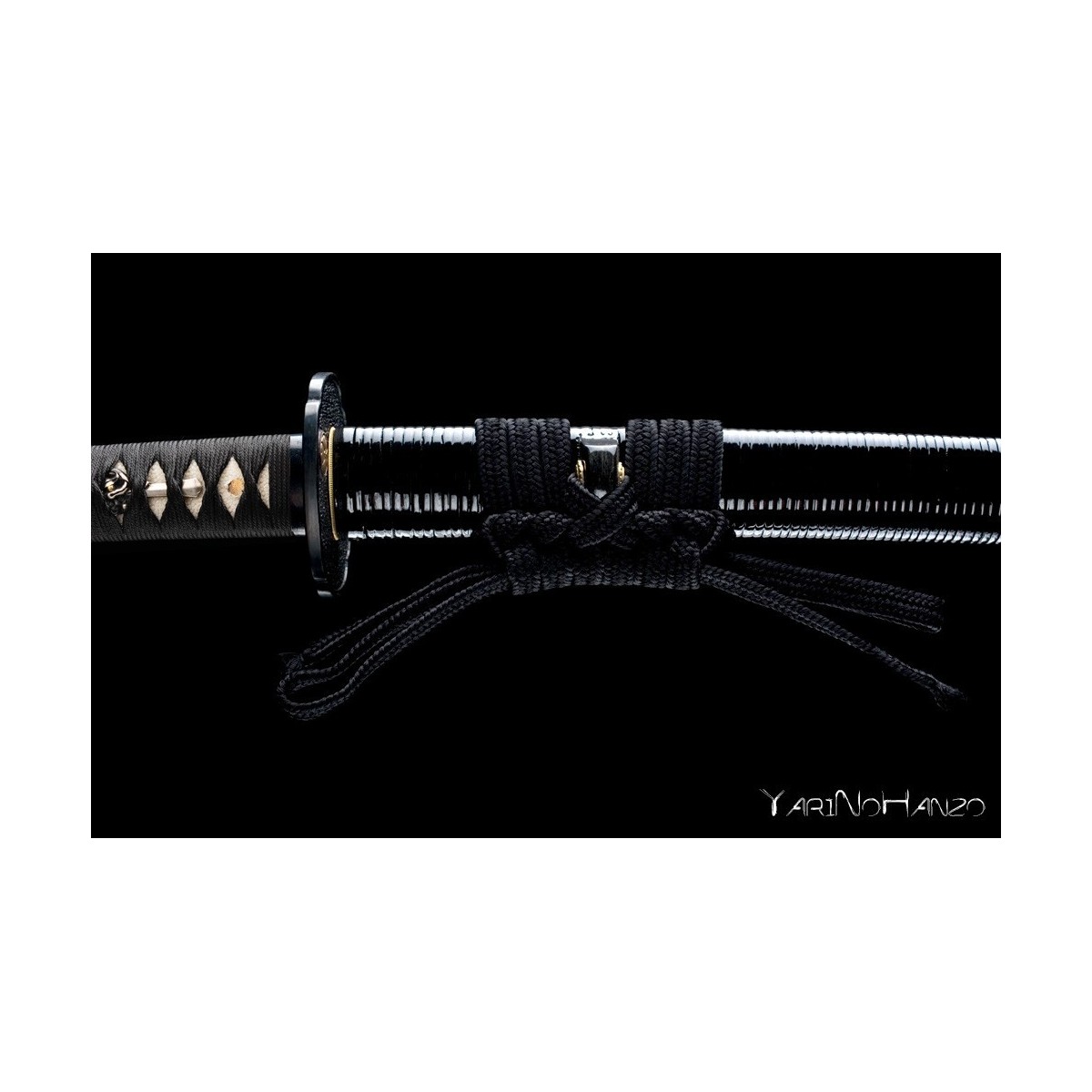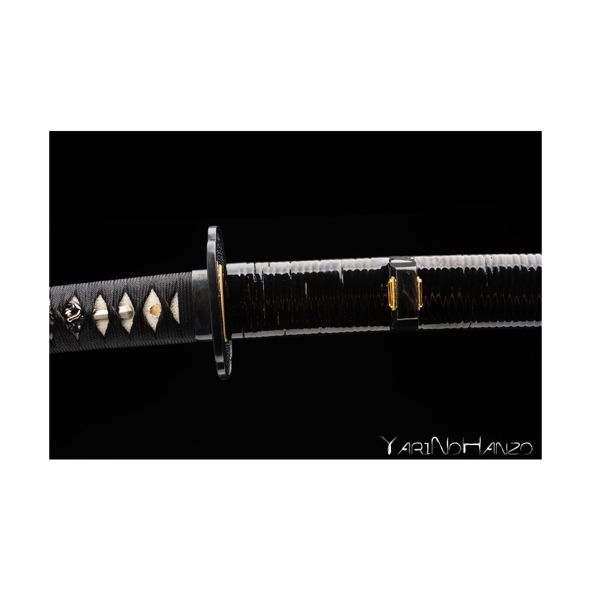 - Black lacquered high quality wooden saya decorated with real ray skin, strengthen with real buffalo horn, lacquered cane decorations