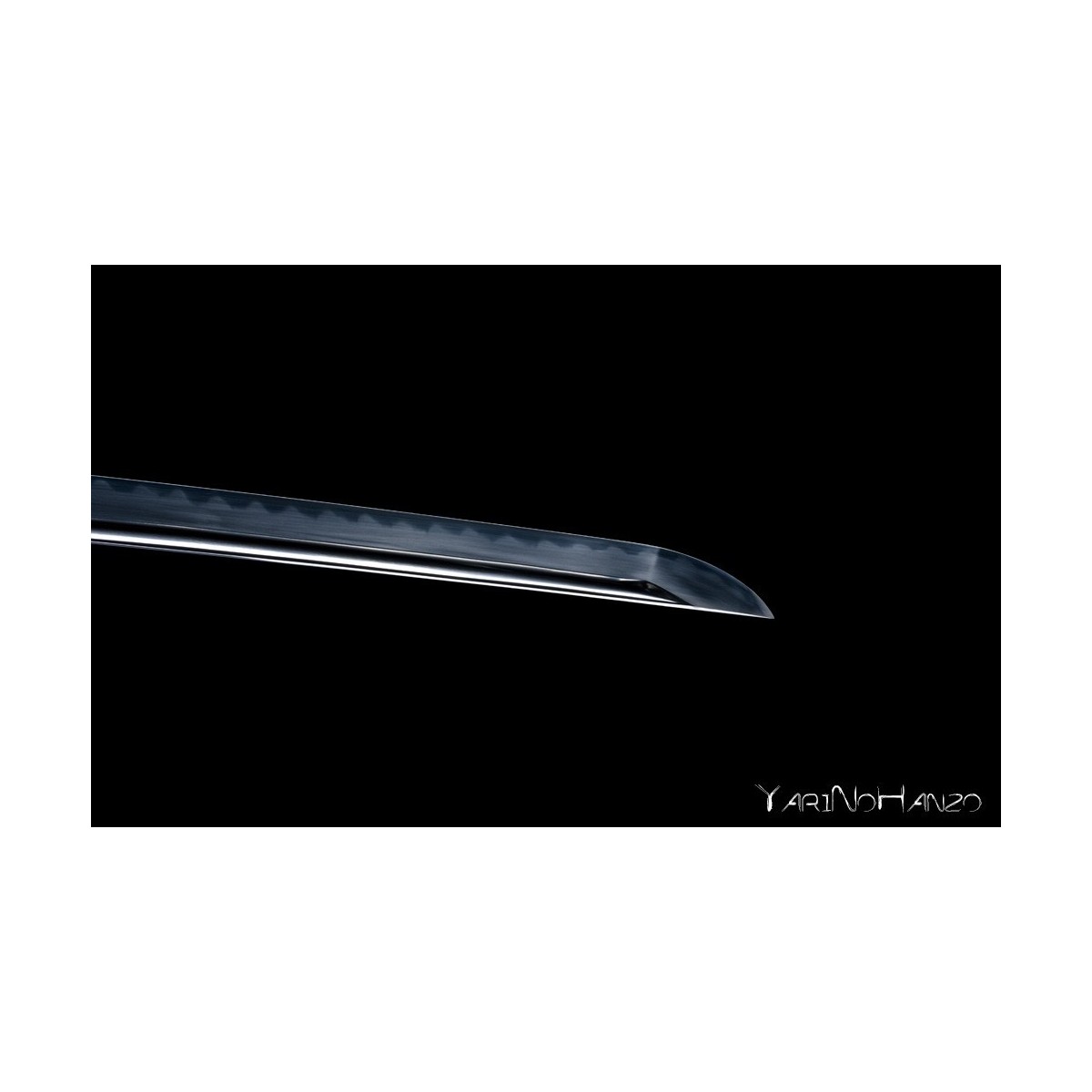 - Differentially hardened and clay tempered blade, authentic hamon Gunome Choji style