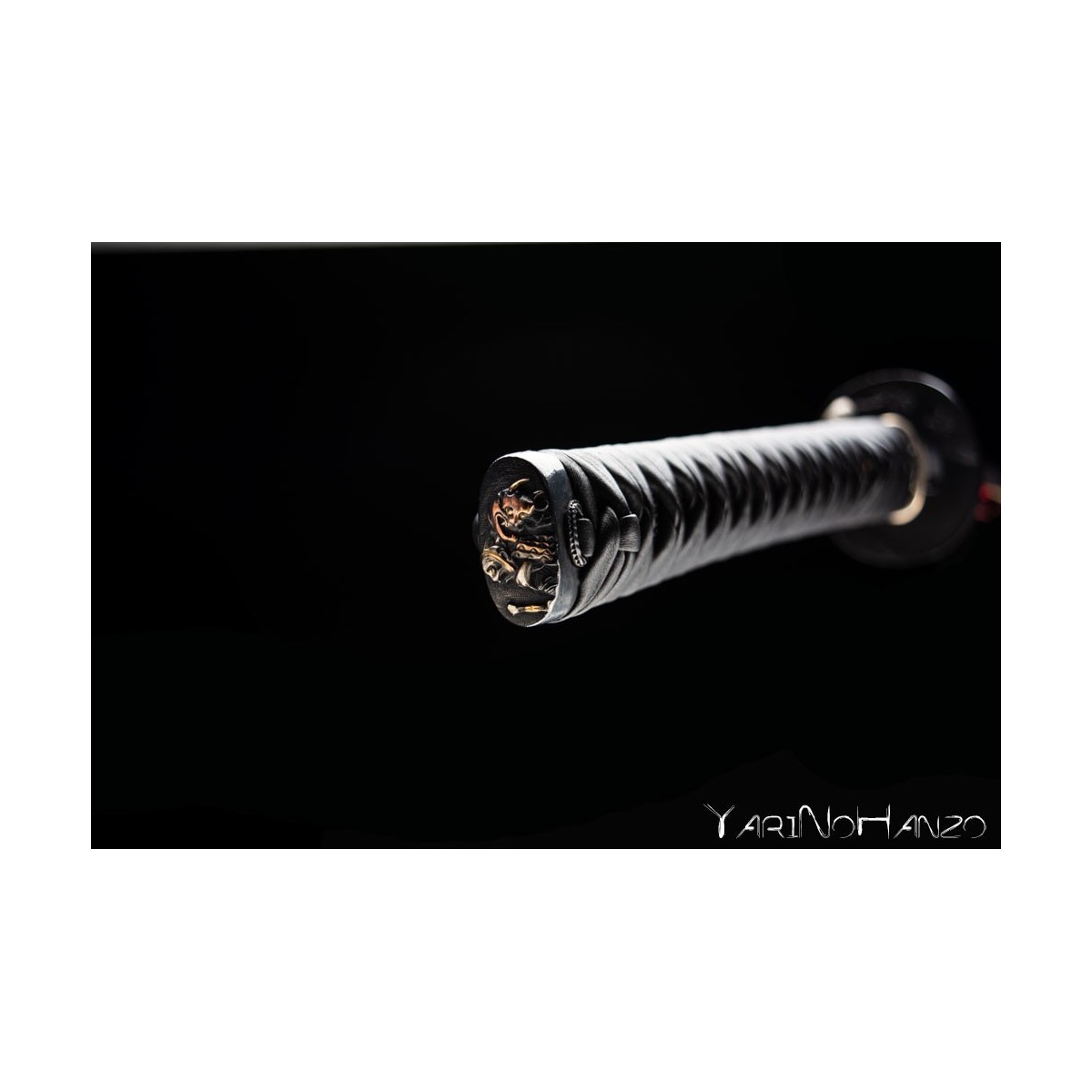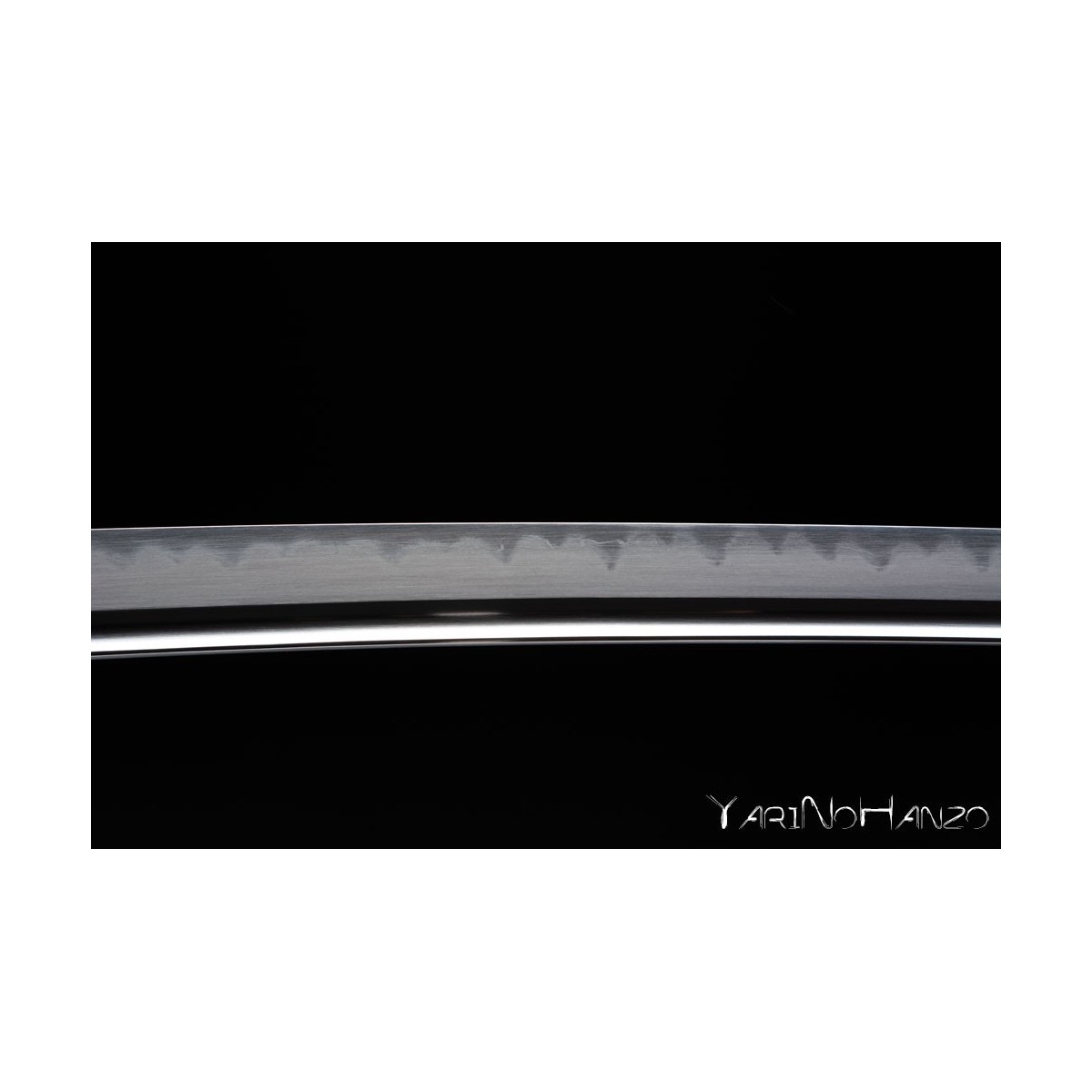 - Differentially hardened and clay tempered blade, authentic hamon Notare style.