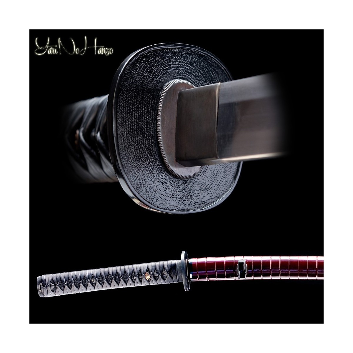 - Deep red lacquered wooden saya, perfect proportions and counterbalance. Suitable for amateurs and experts