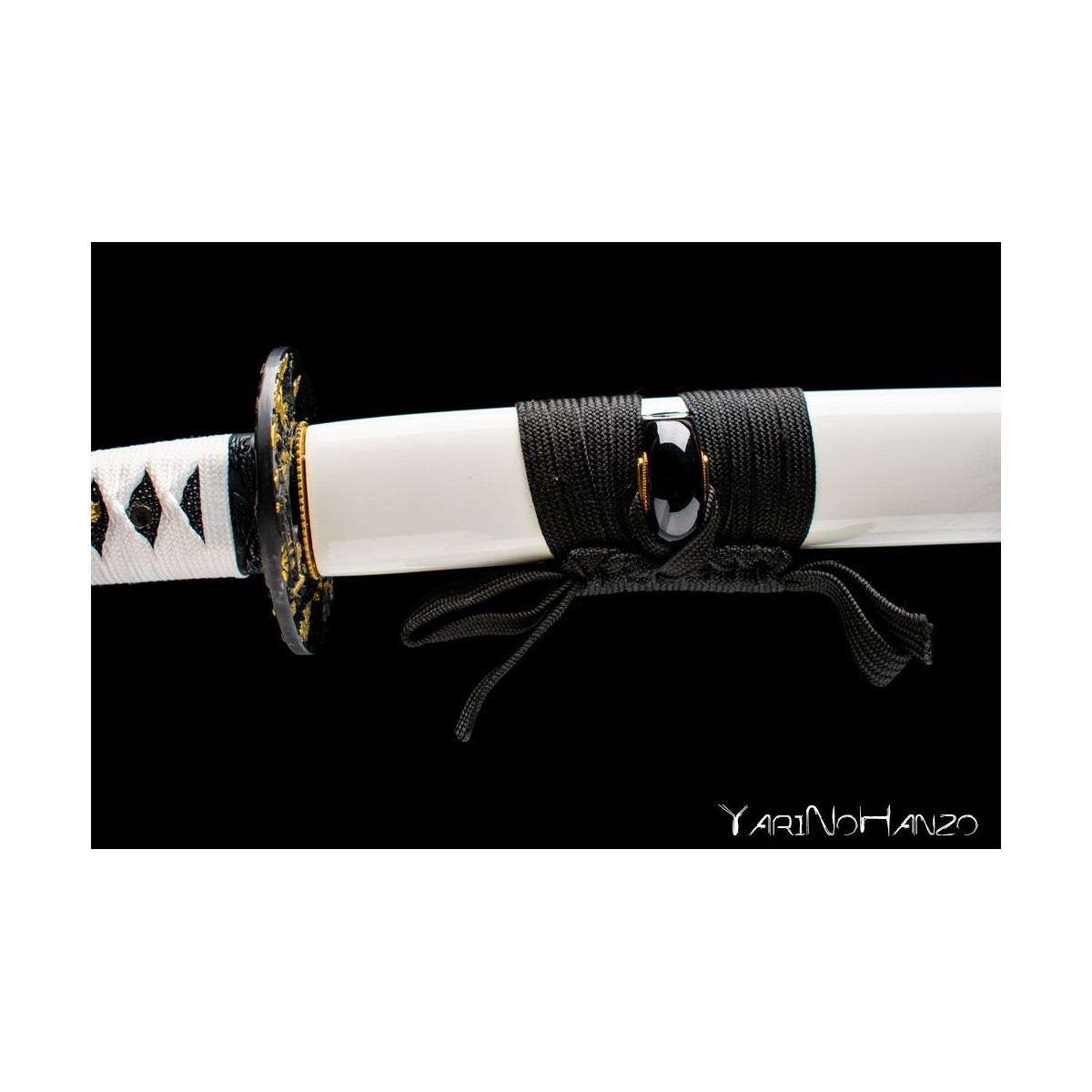- Black-white lacquered wooden saya, white tsukaito and black ray skin