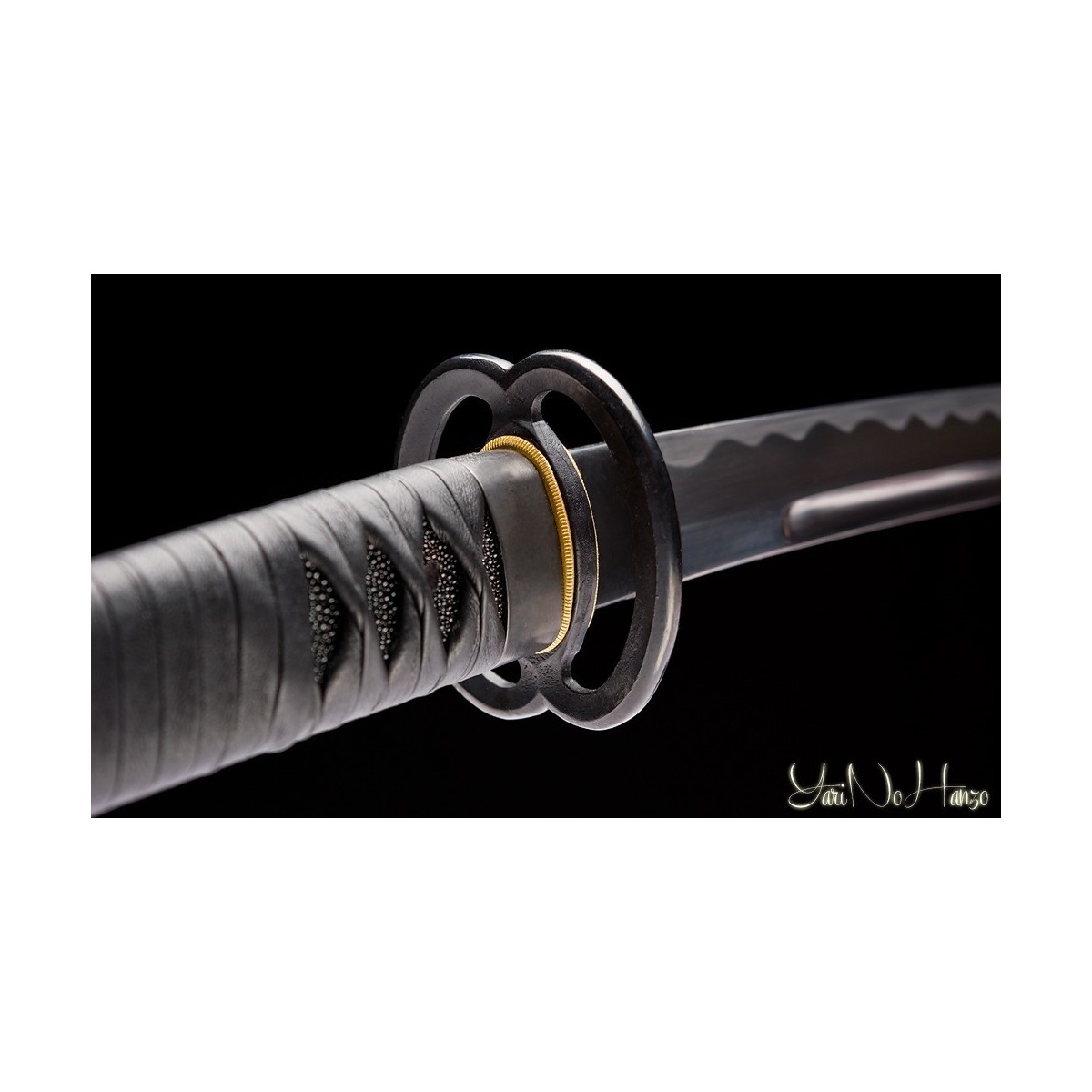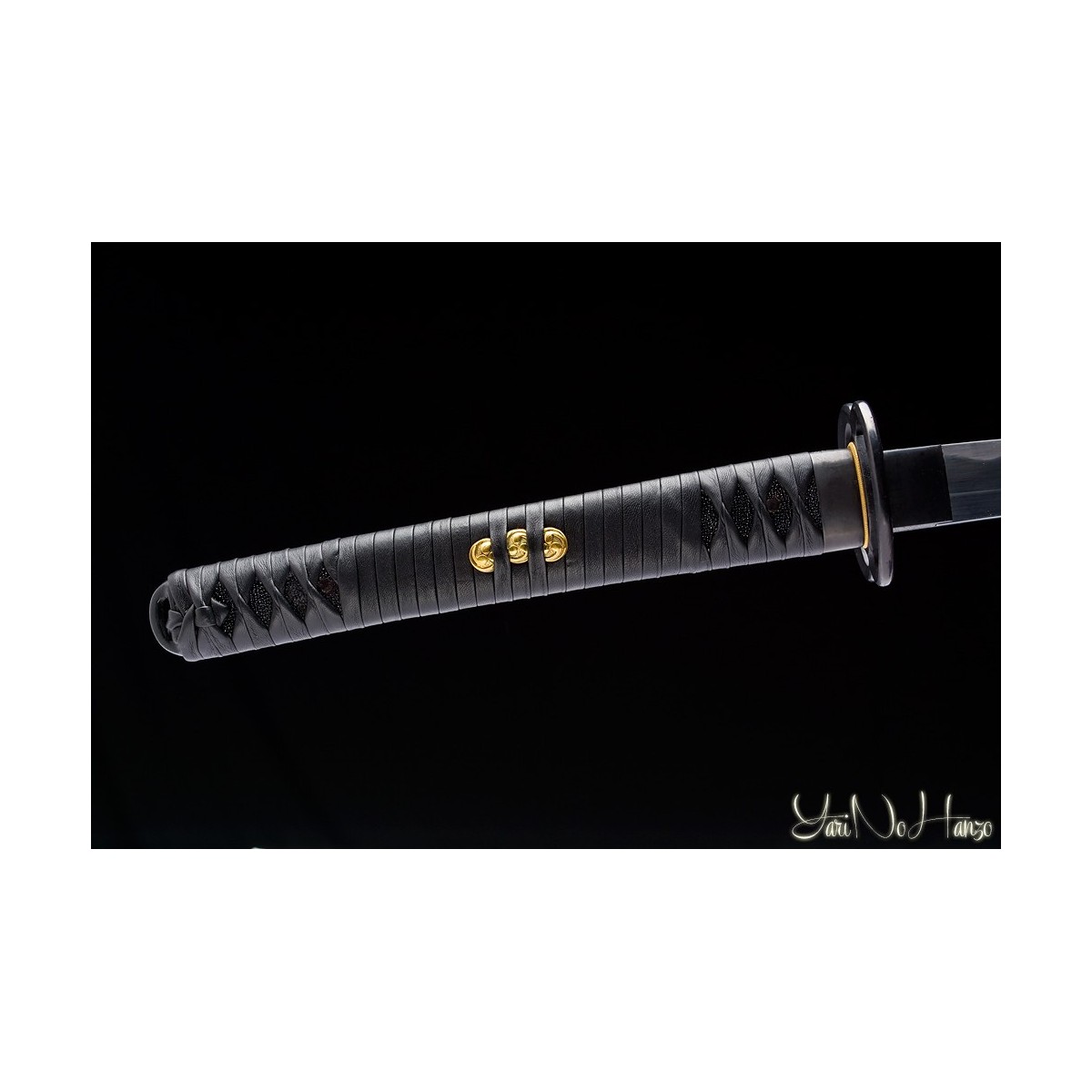 - Black leather Tsukagawa, made in Italy, real ray skin and traditional Koshirae “higo” style