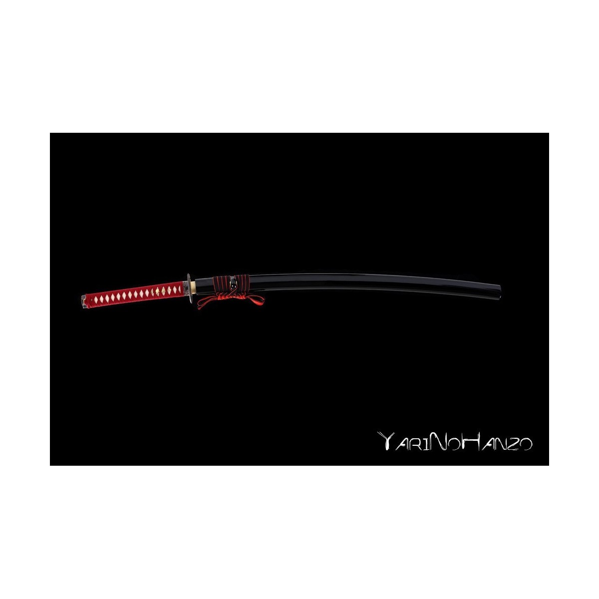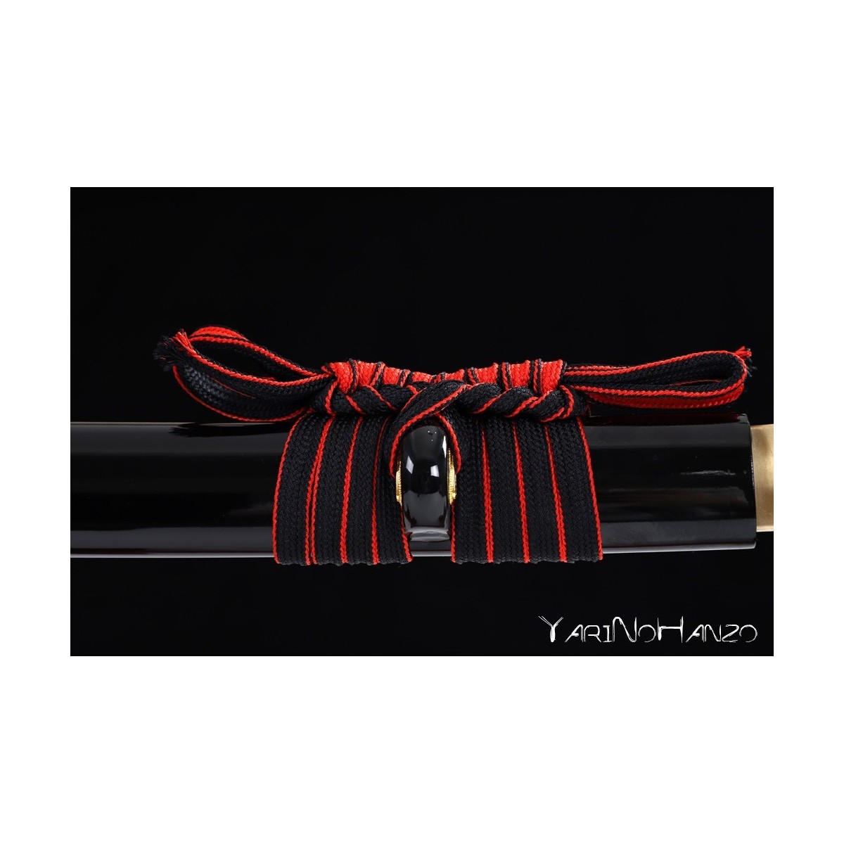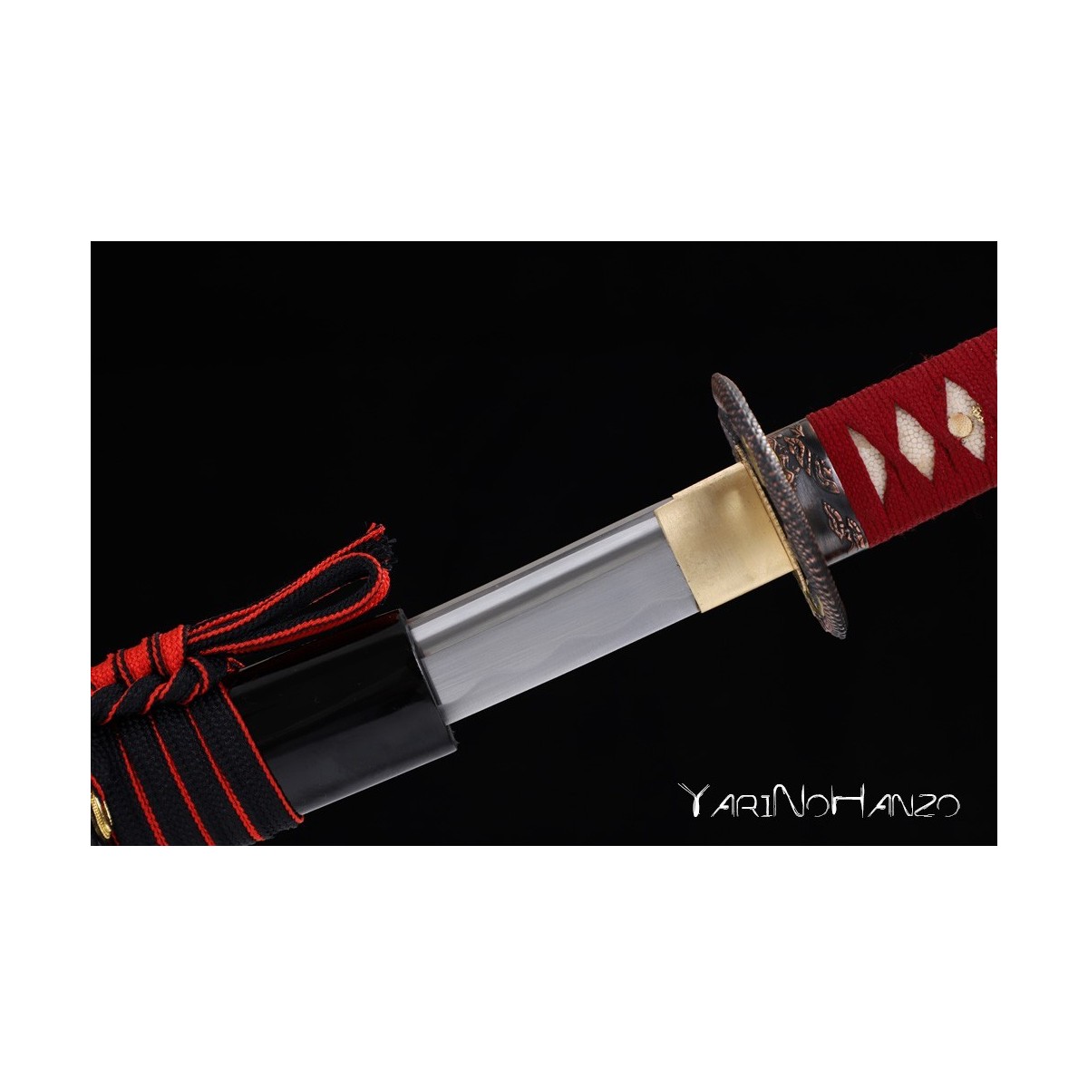- Black lacquered wooden saya, red tsukaito