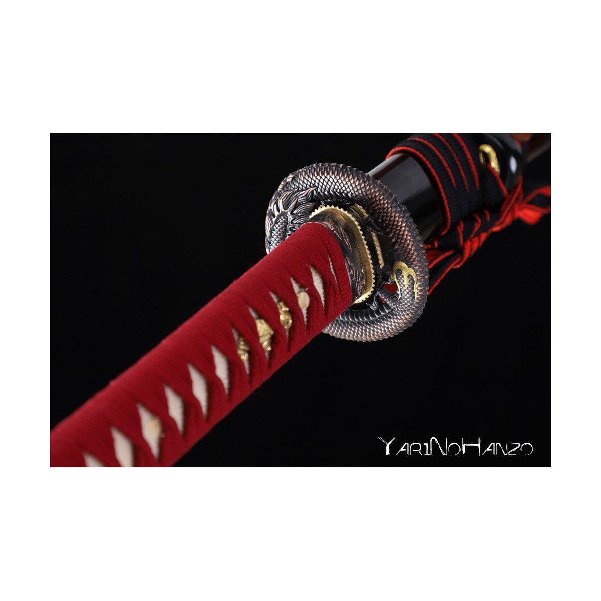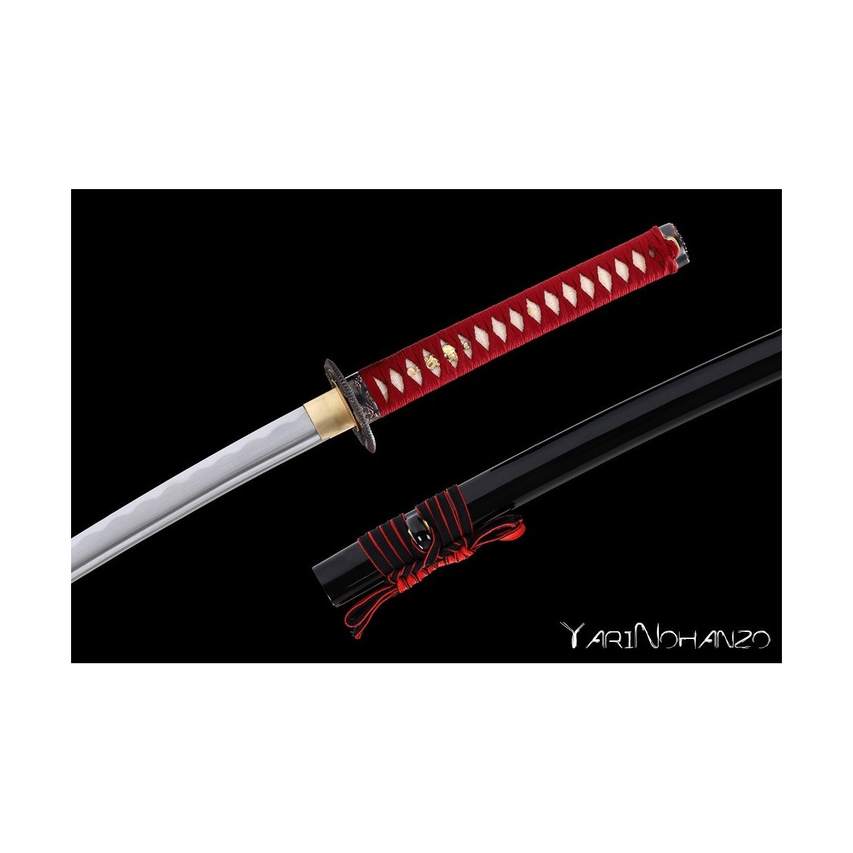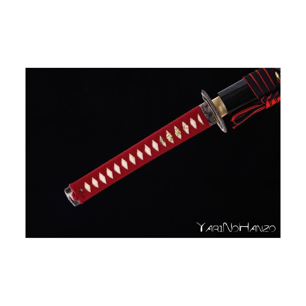 - Black lacquered wooden saya, red tsukaito