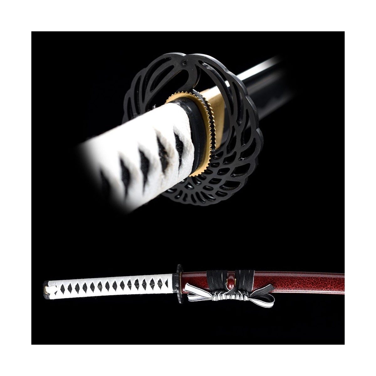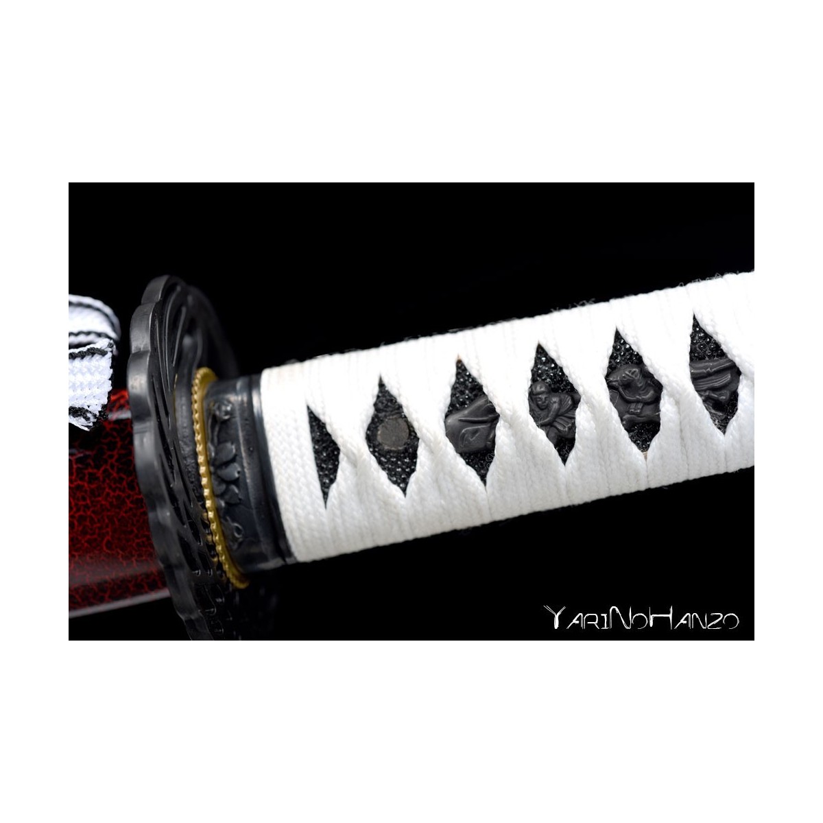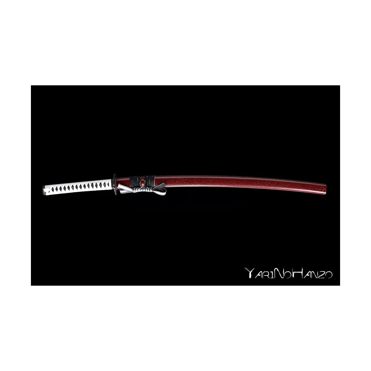 - Black-red lacquered wooden saya, white tsukaito and black ray skin