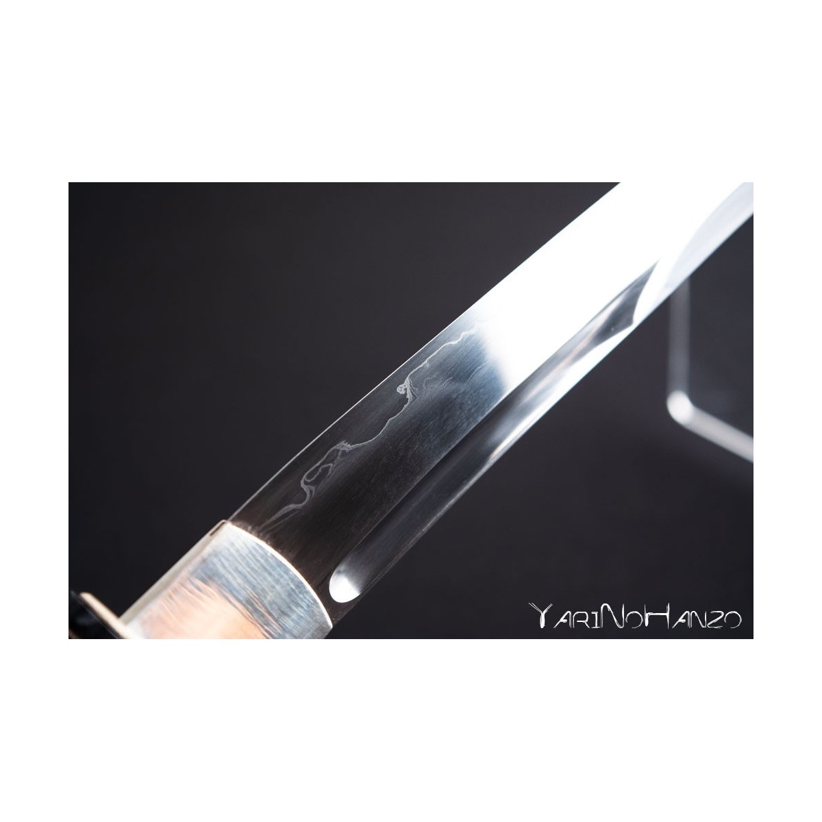 - Differentially hardened and clay tempered blade, authentic hamon Notare style.