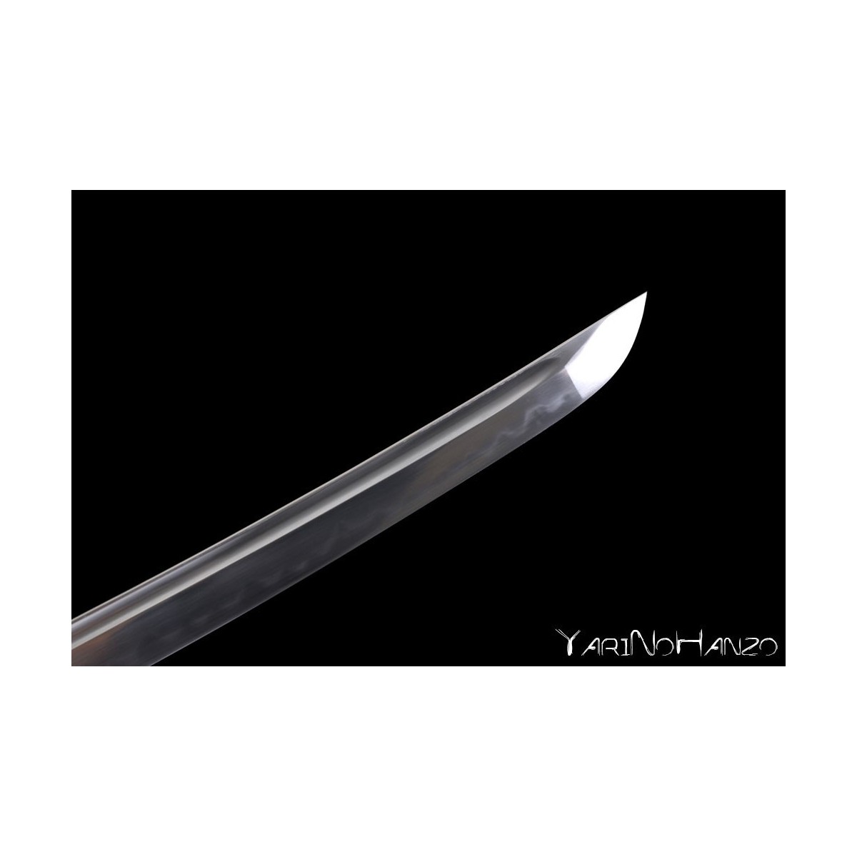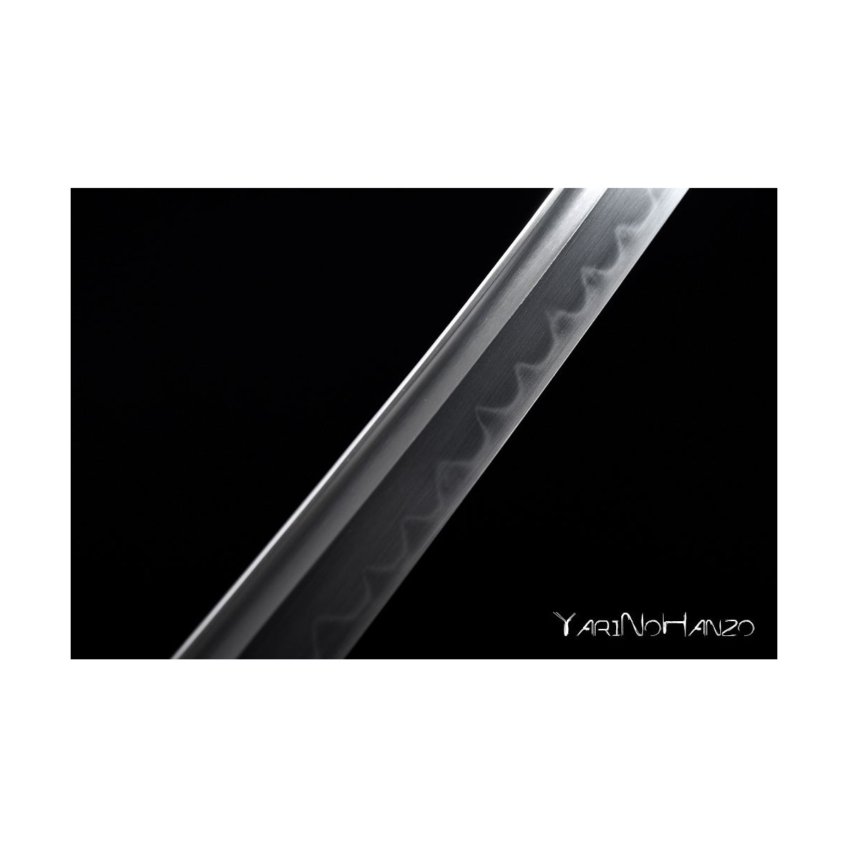 - Maru kitae 1060 high carbon steel clay tempered blade with Bohi and real Hamon "midare" style