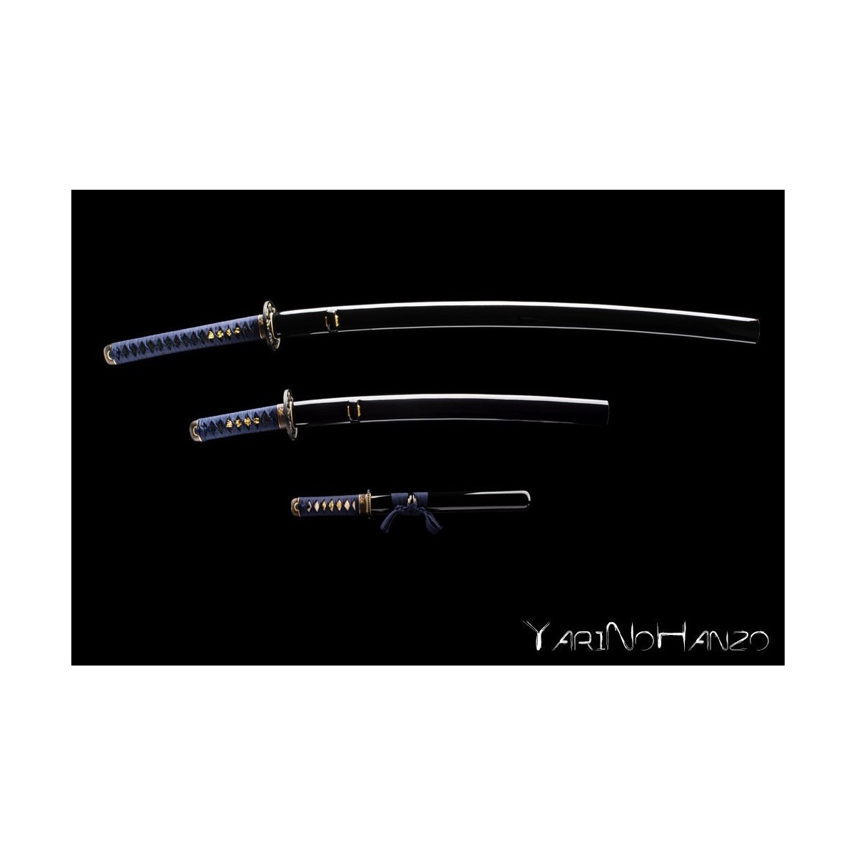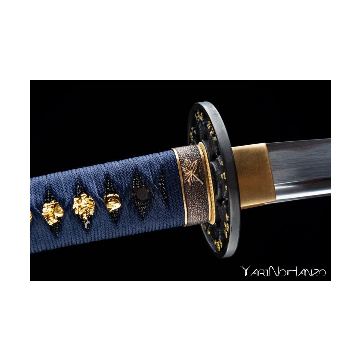 - Blue tsukaito, real black ray leather and decorated tsuba