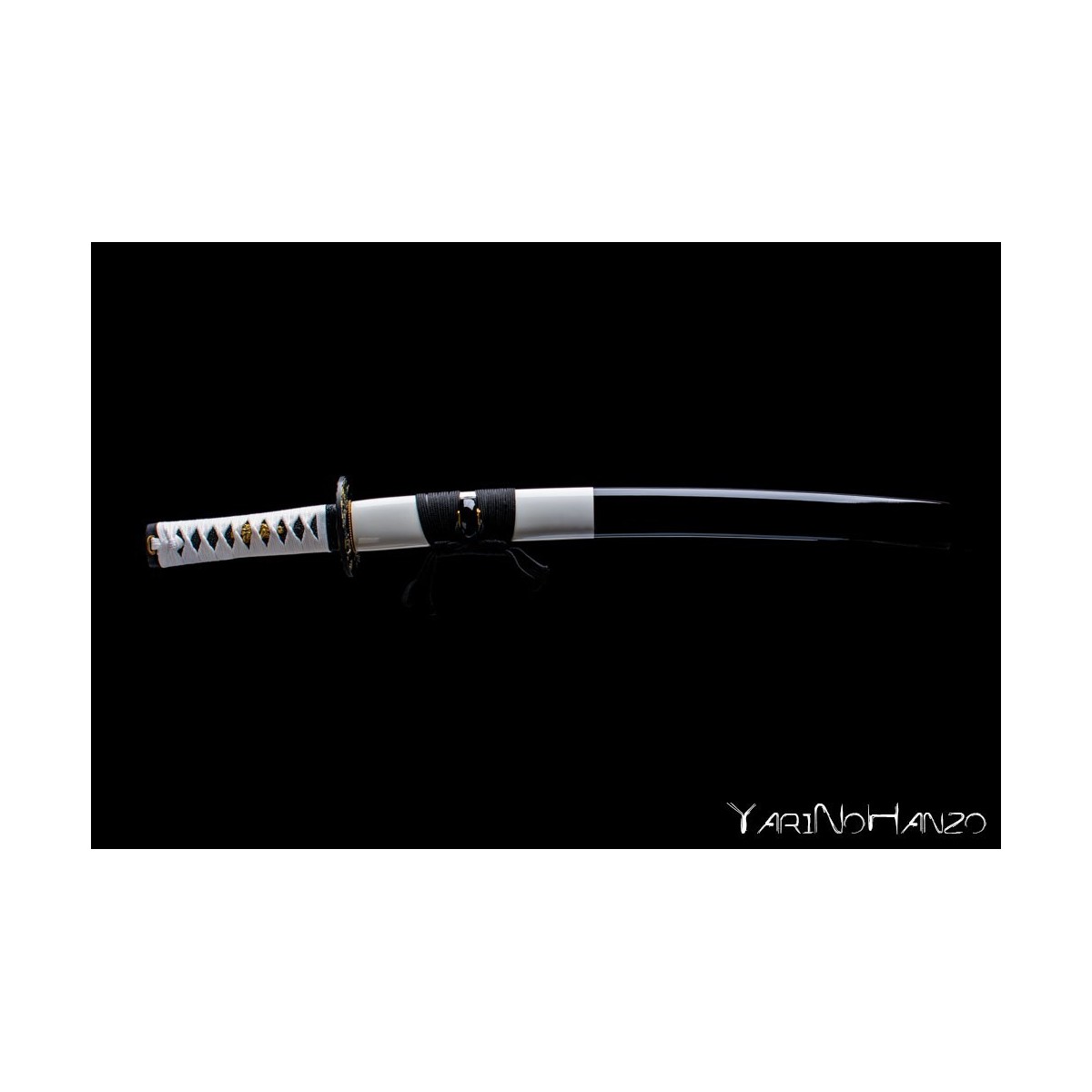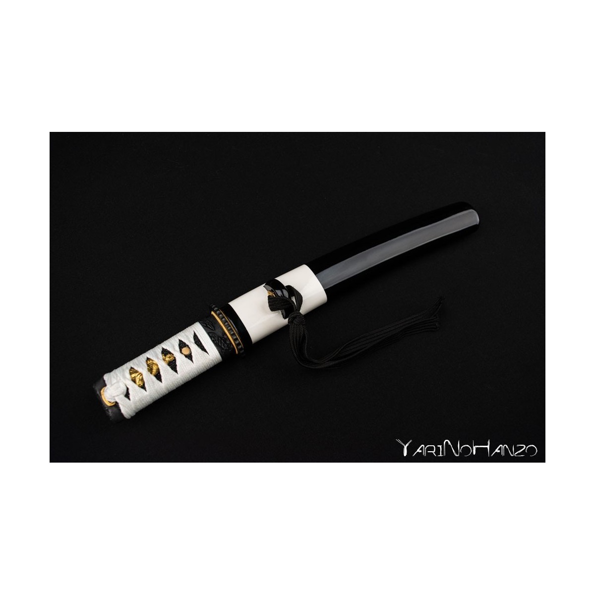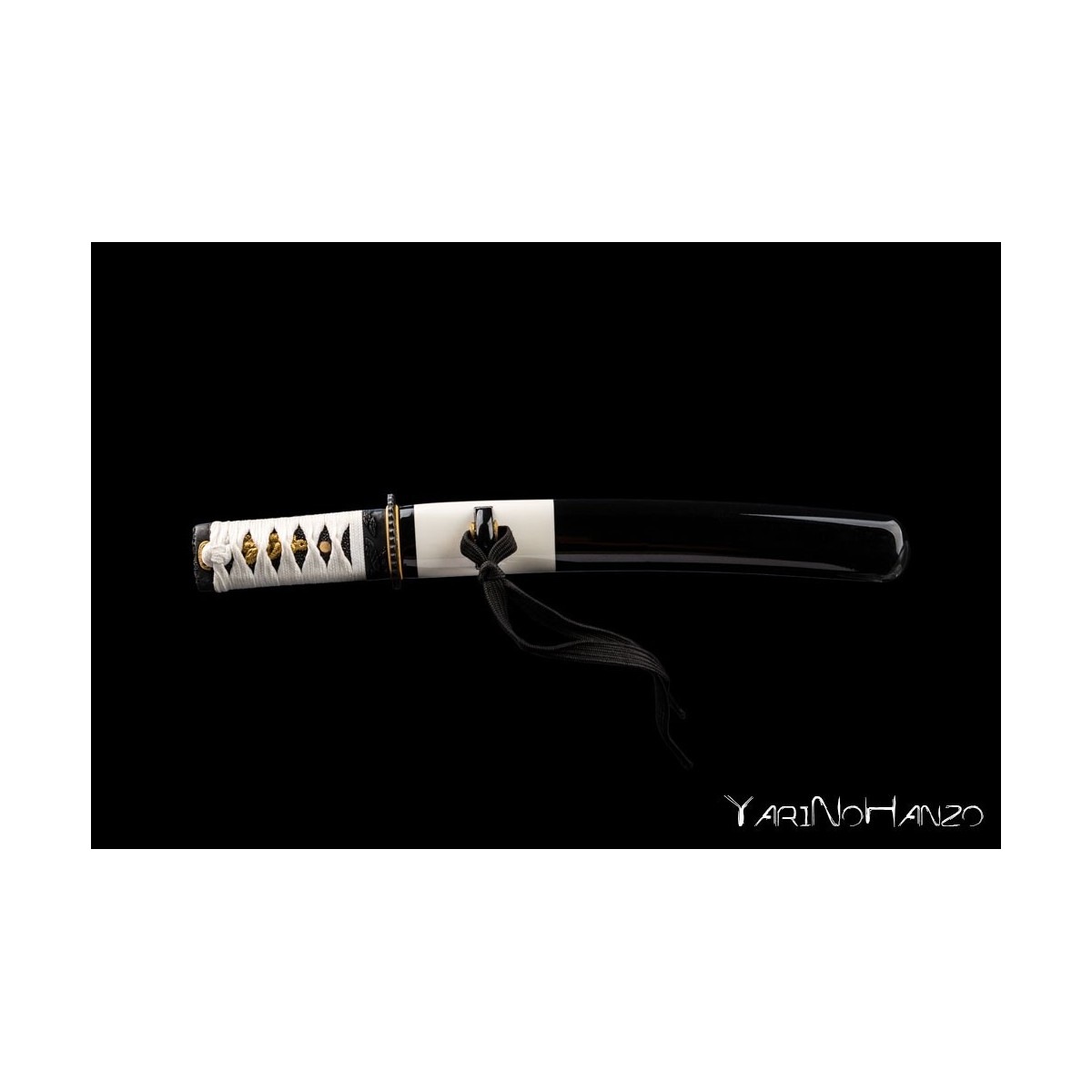 - Black-white lacquered wooden saya, white tsukaito and black ray skin