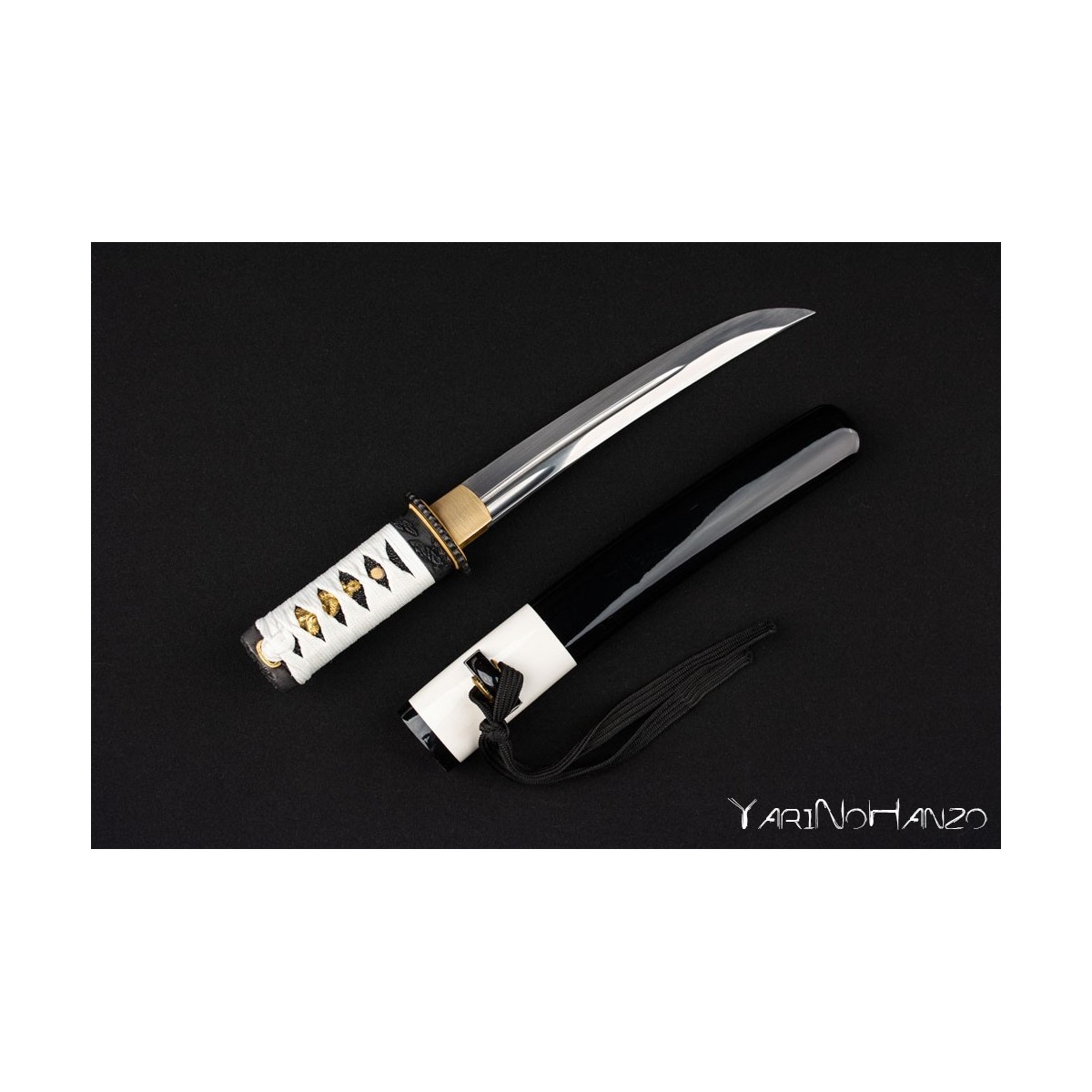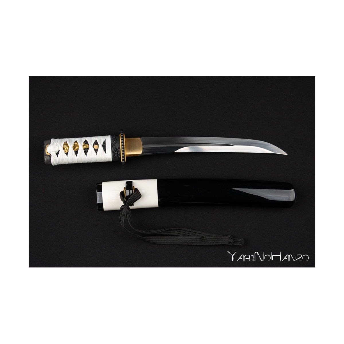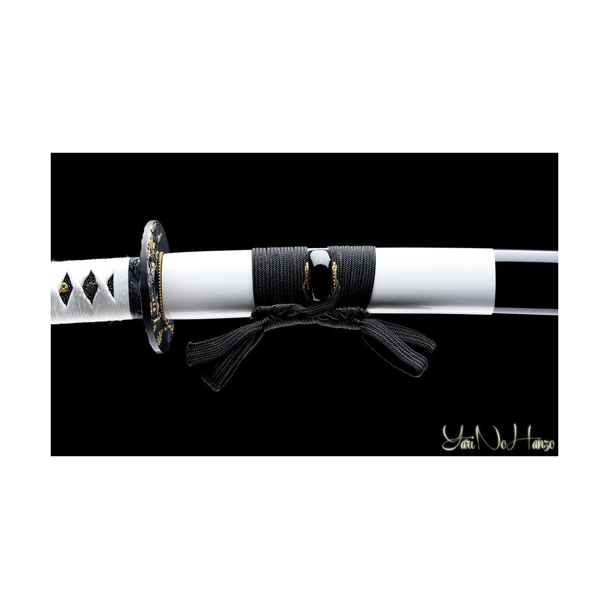 - Black-white lacquered wooden saya, white tsukaito and black ray skin