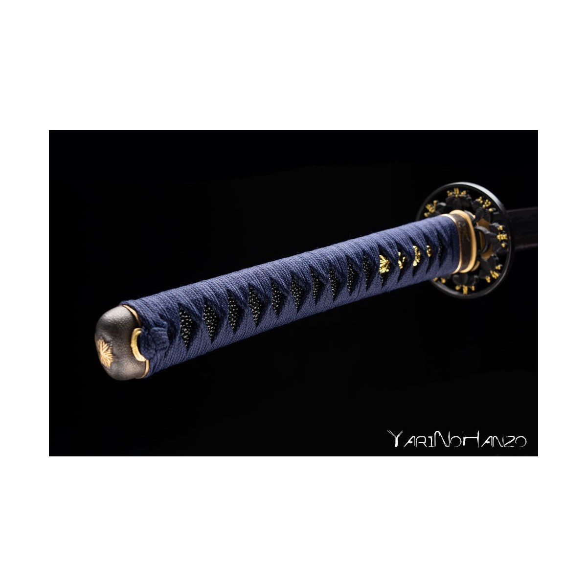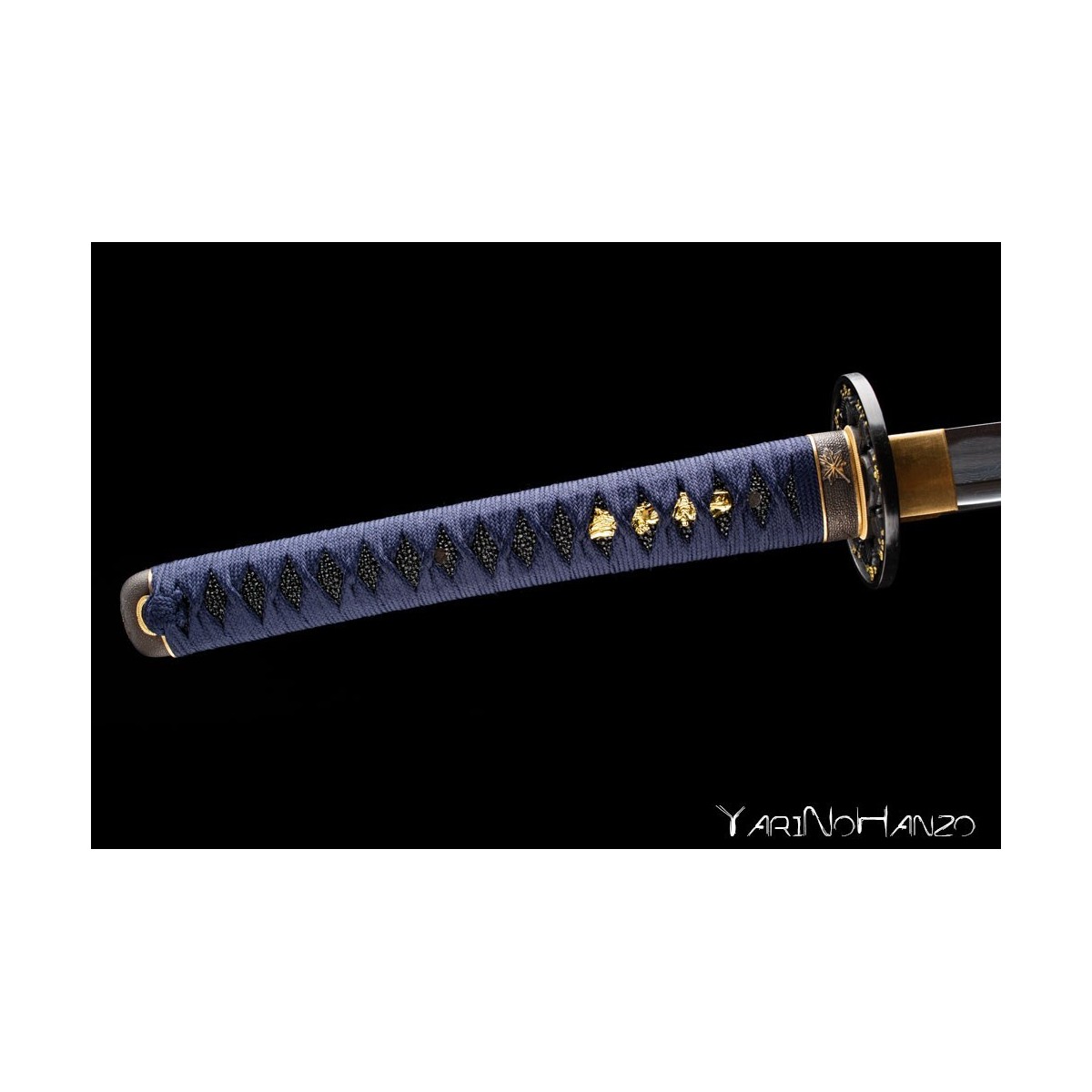 - Blue tsukaito, real black ray leather and decorated tsuba