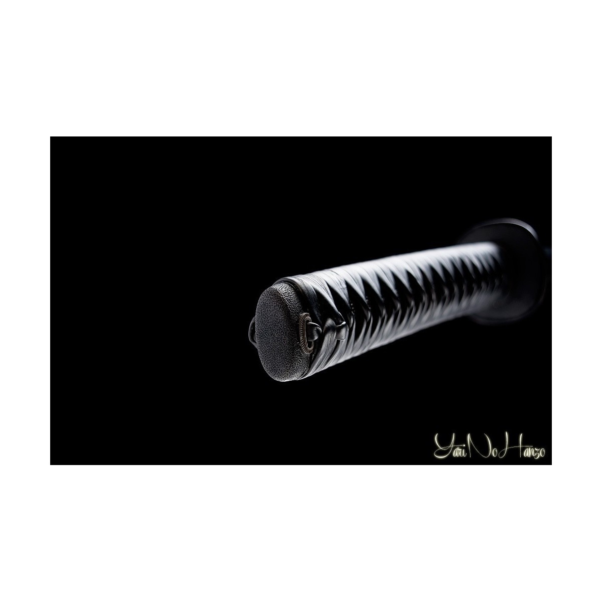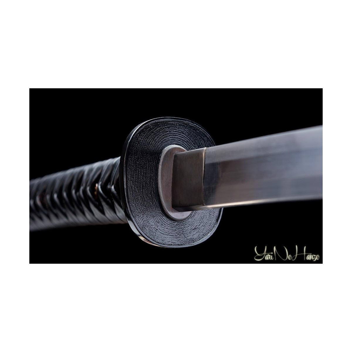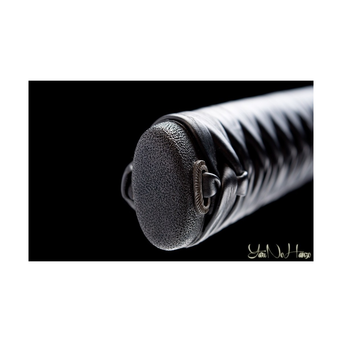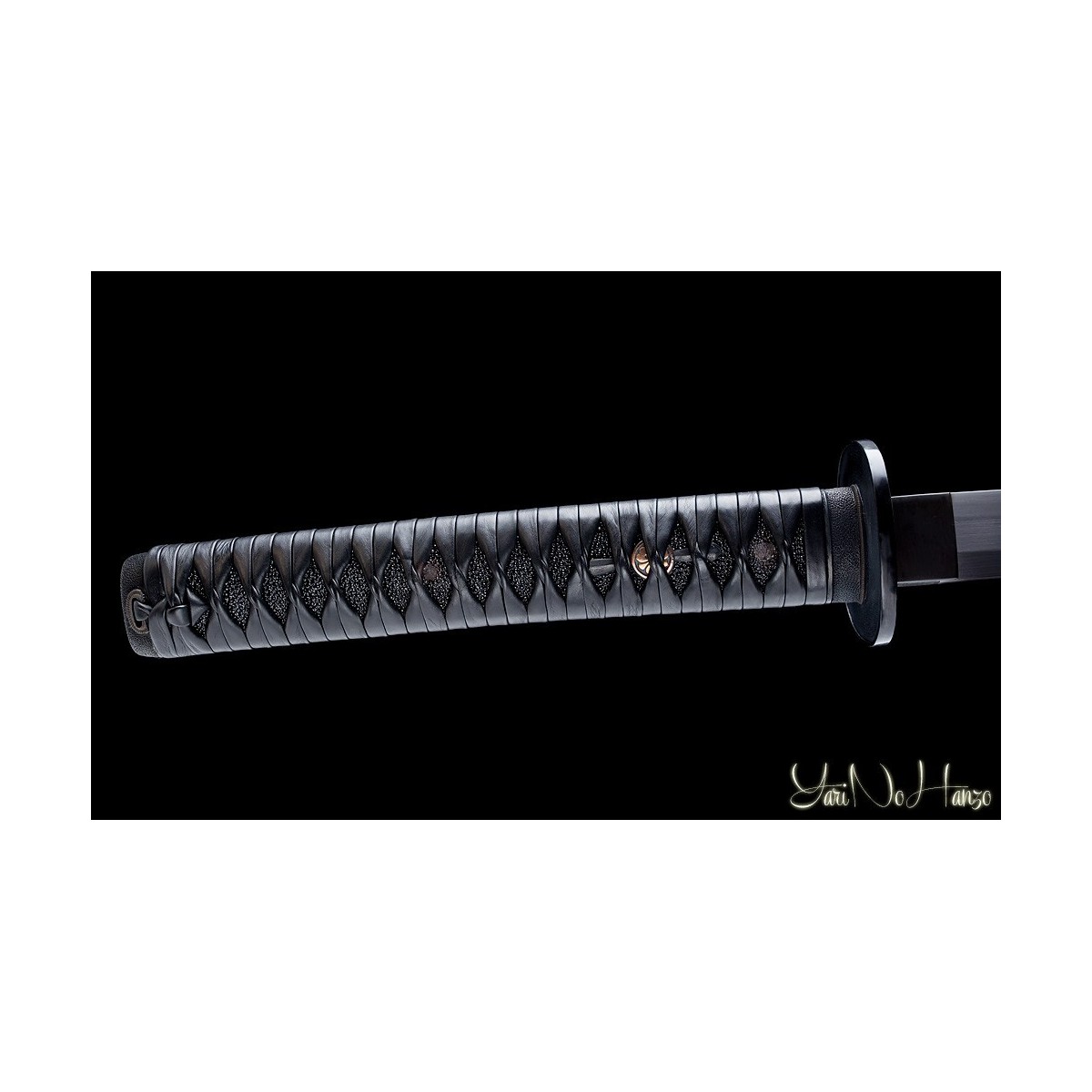 - Black leather tsukaito, samegawa in real black ray leather, traditional tsuba and old-looking copper finishes