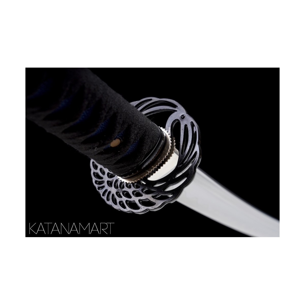 - Tsuka with black cotton ito and blue ray skin samegawa.