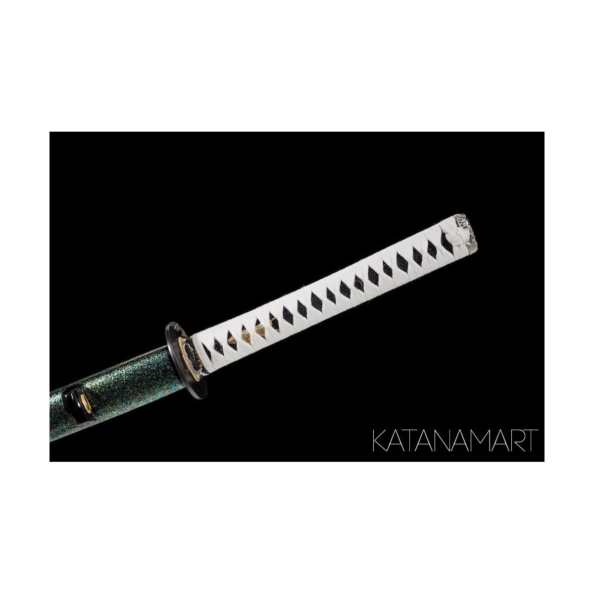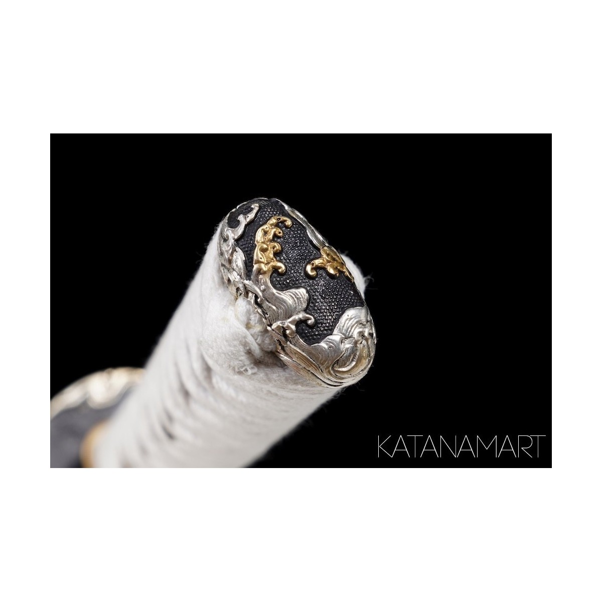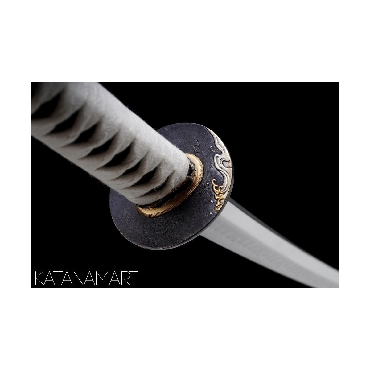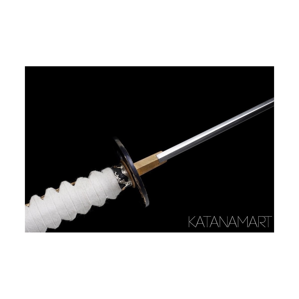 - White cotton tsukaito, hinerimaki alternating wrap for durability.