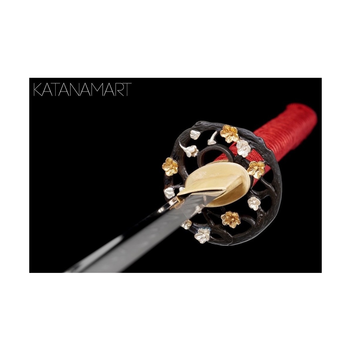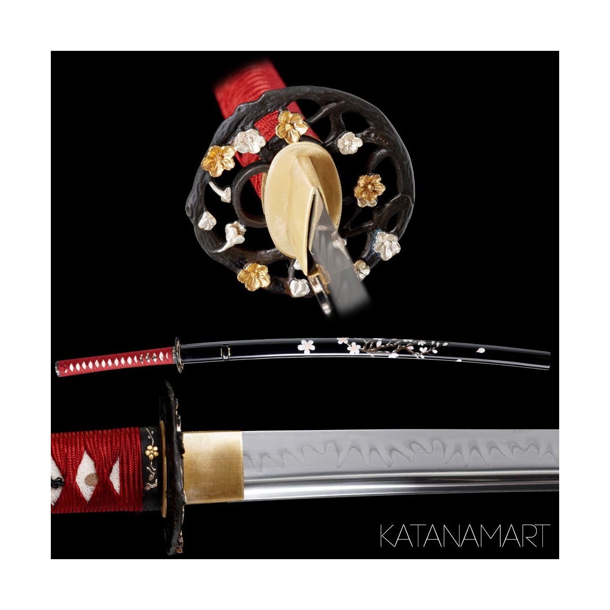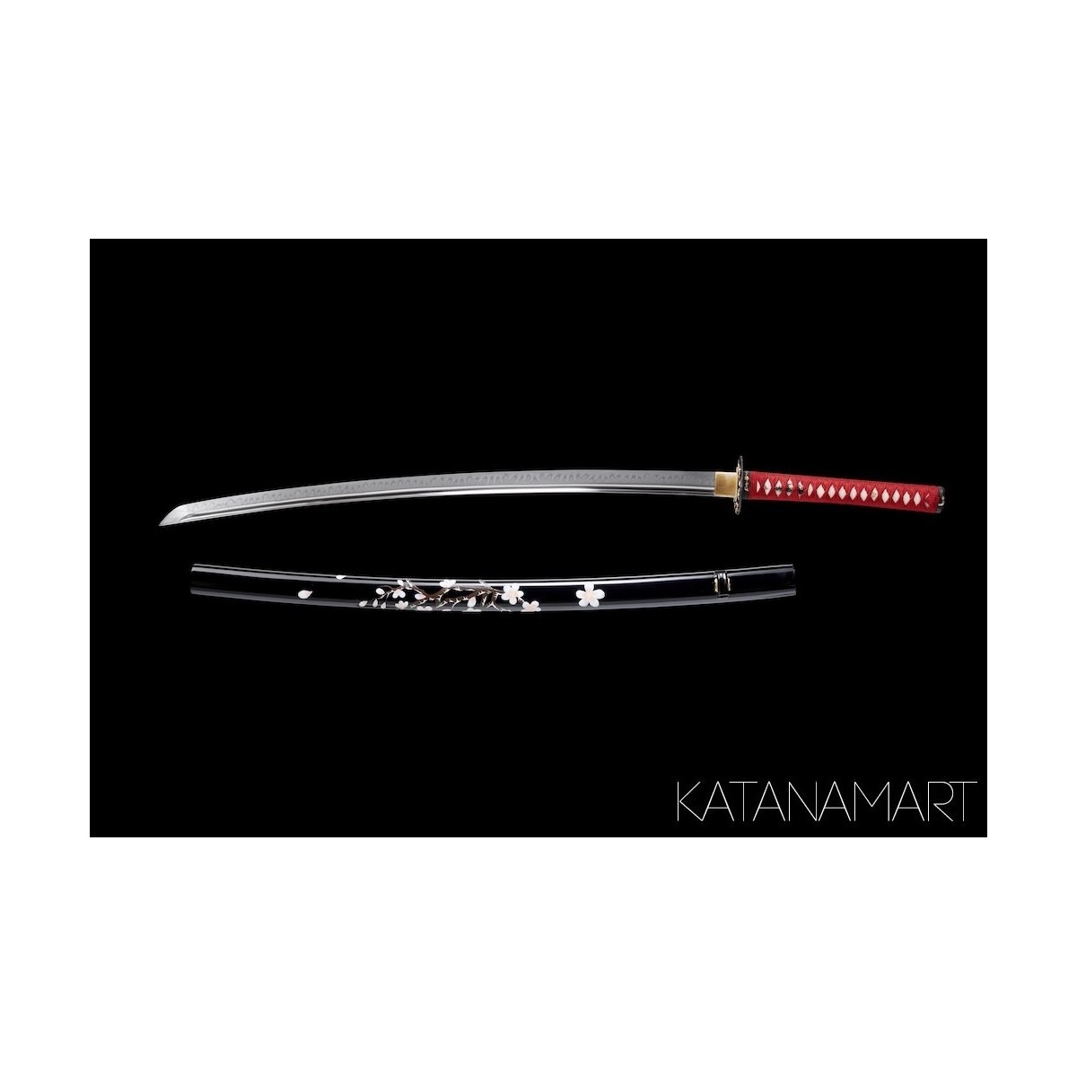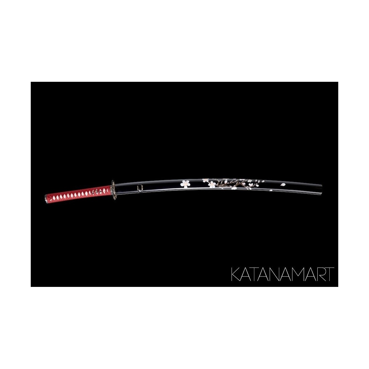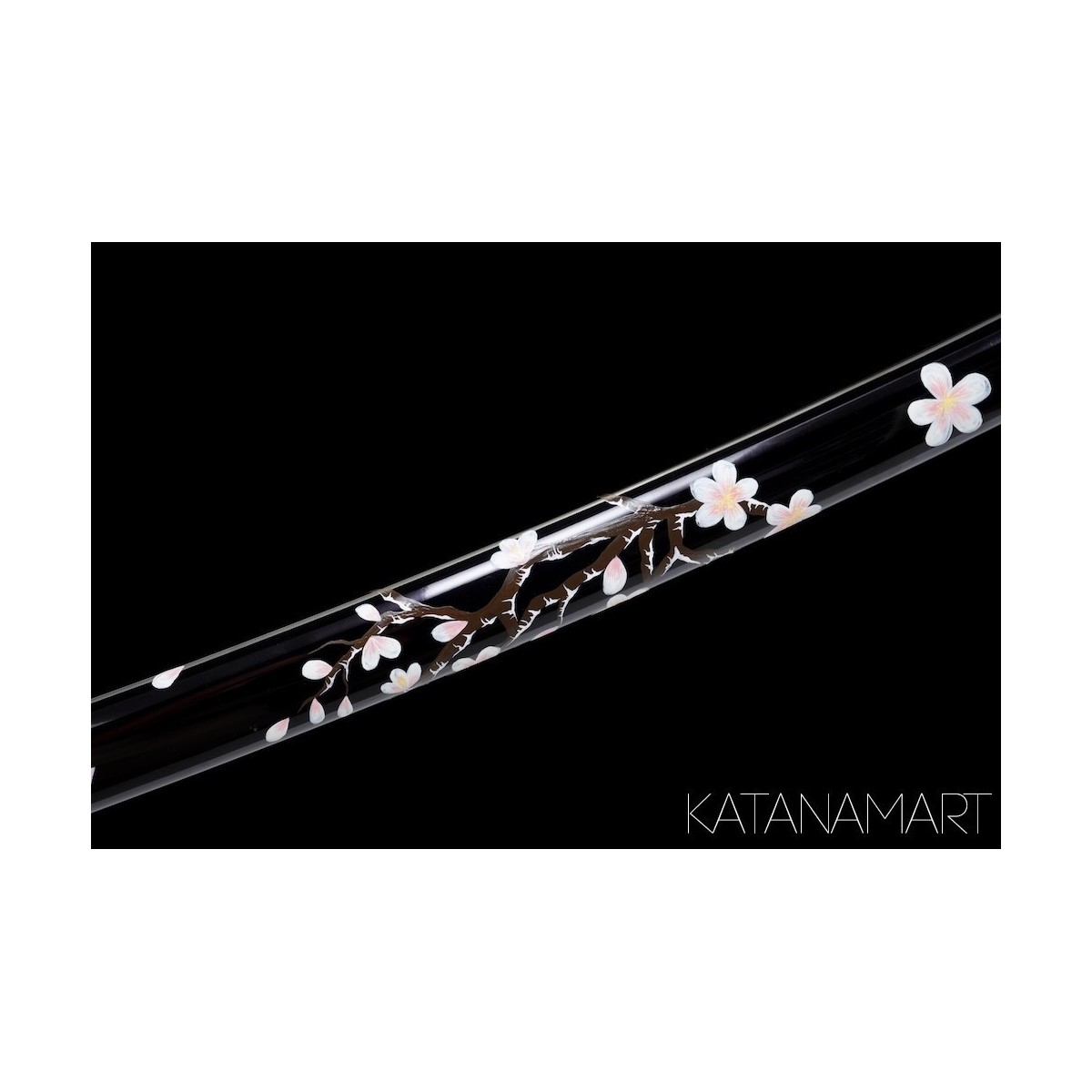 - Black lacquered saya with hand-painted sakura decoration.