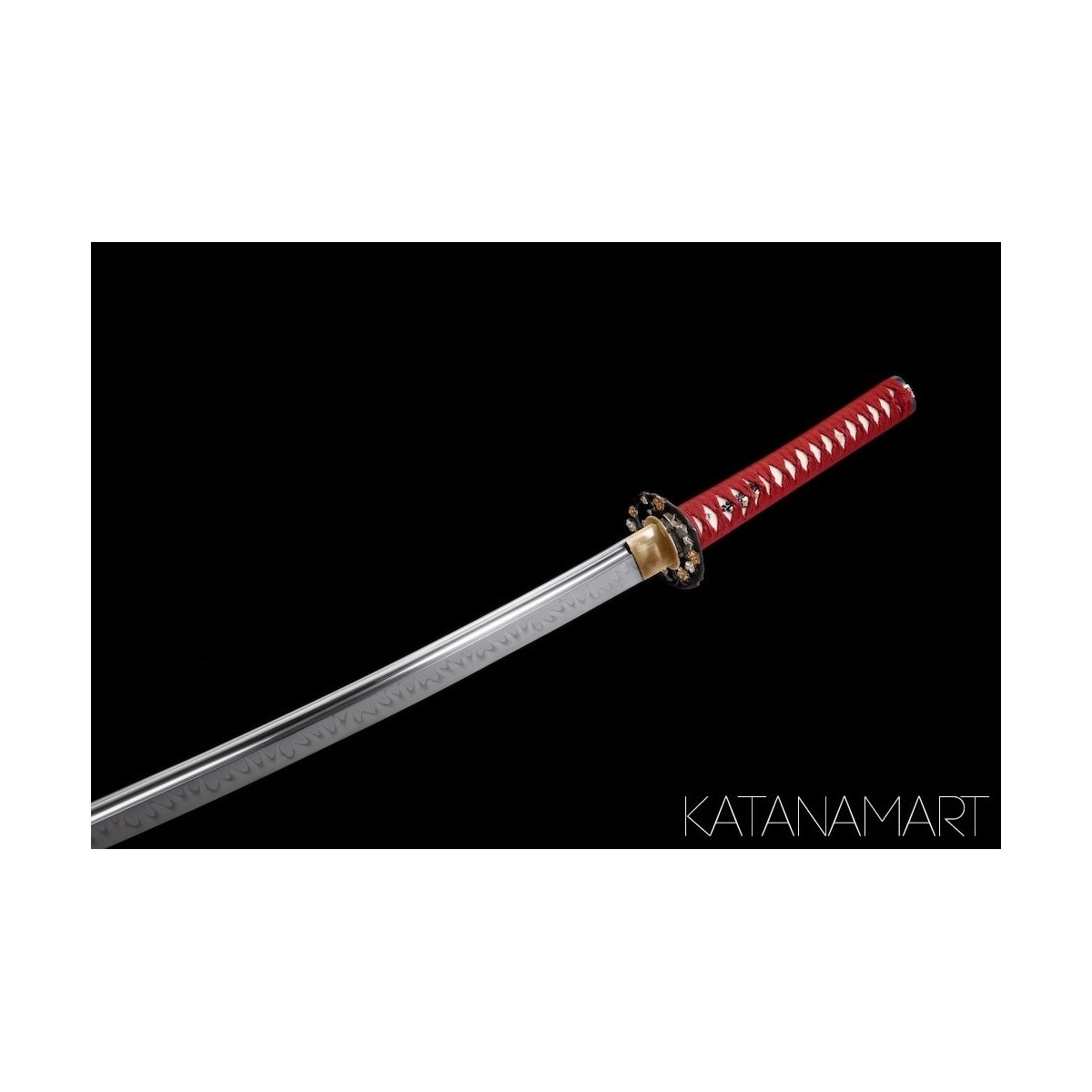Crafted for high performance, the Otomo Katana features a maru kitae blade with bohi, forged from 1095 high carbon steel. Clay tempered for resilience, it displays a beautiful and highly visible togari-gunome hamon, hand-polished to highlight its depth and authenticity. Fully functional and full tang, it is perfectly suited for martial arts such as Tameshigiri, Kenjutsu, Battodo, and Ninjutsu, while also making an extraordinary collector’s piece.