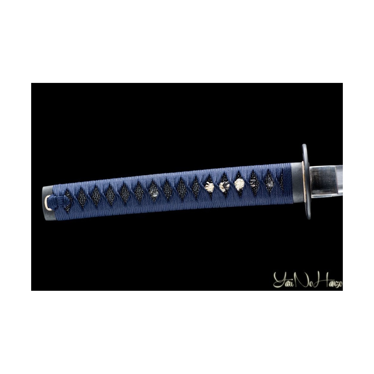 - Blue cotton Tsukaito and alternate Tsukamaki in order to get a long lasting wave even with an intense daily practice, real ray skin Samegawa and iron Tsuba