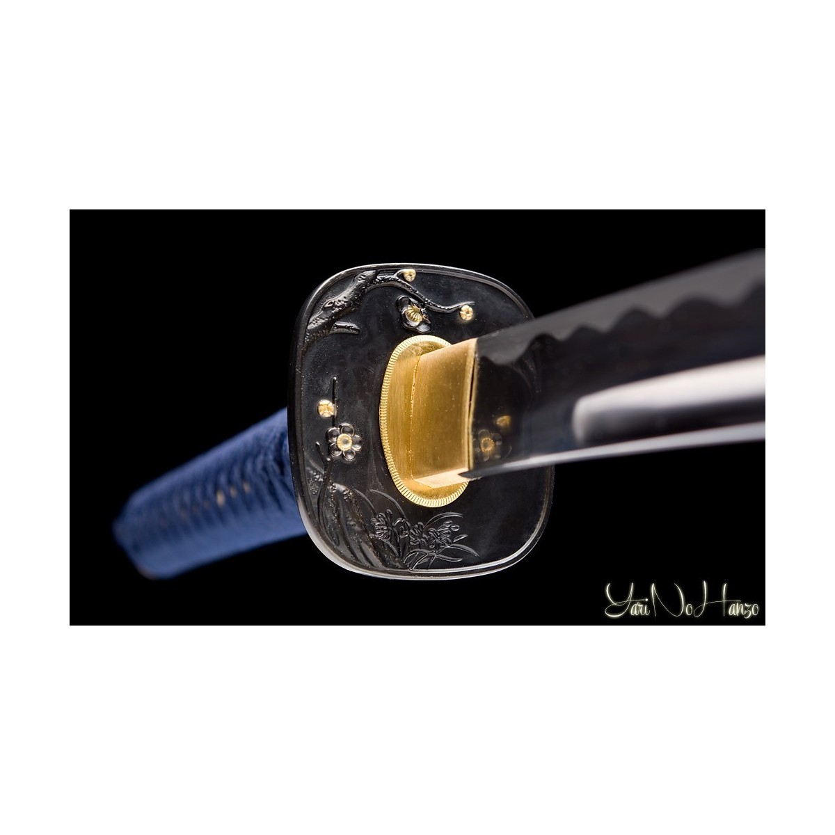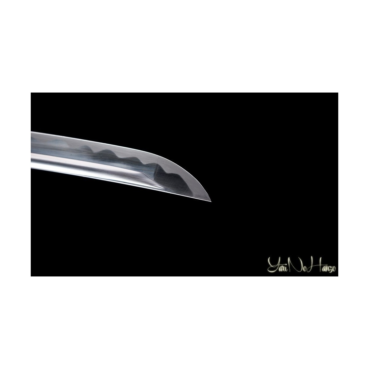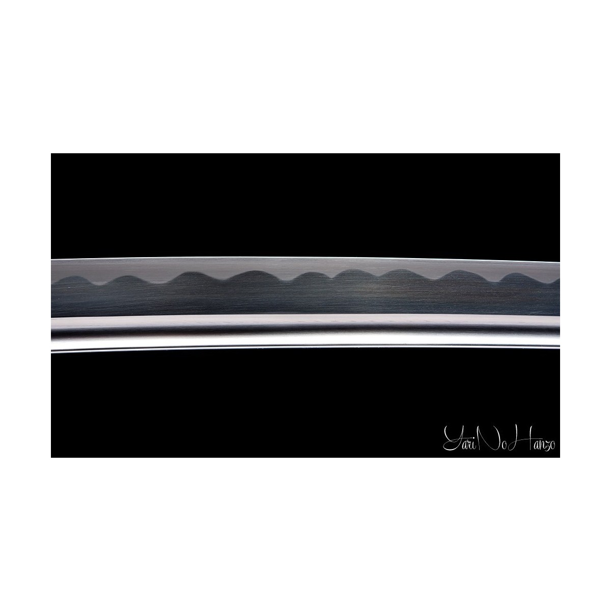 - Maru kitae 1060 high carbon steel blade with Bohi and etched Gunome Choji Hamon