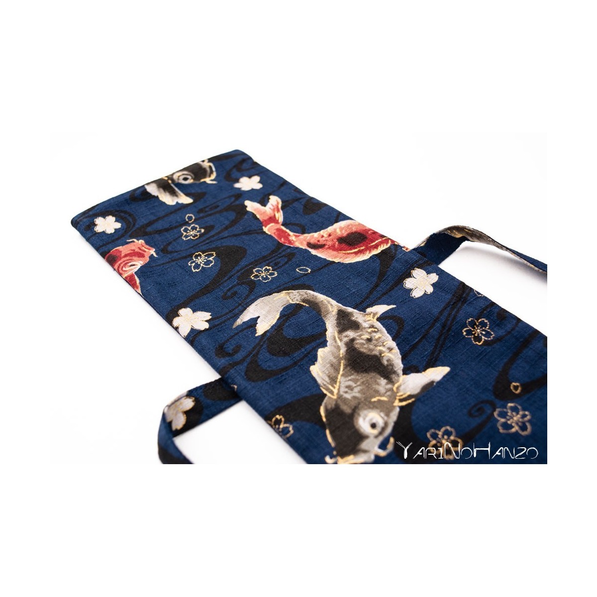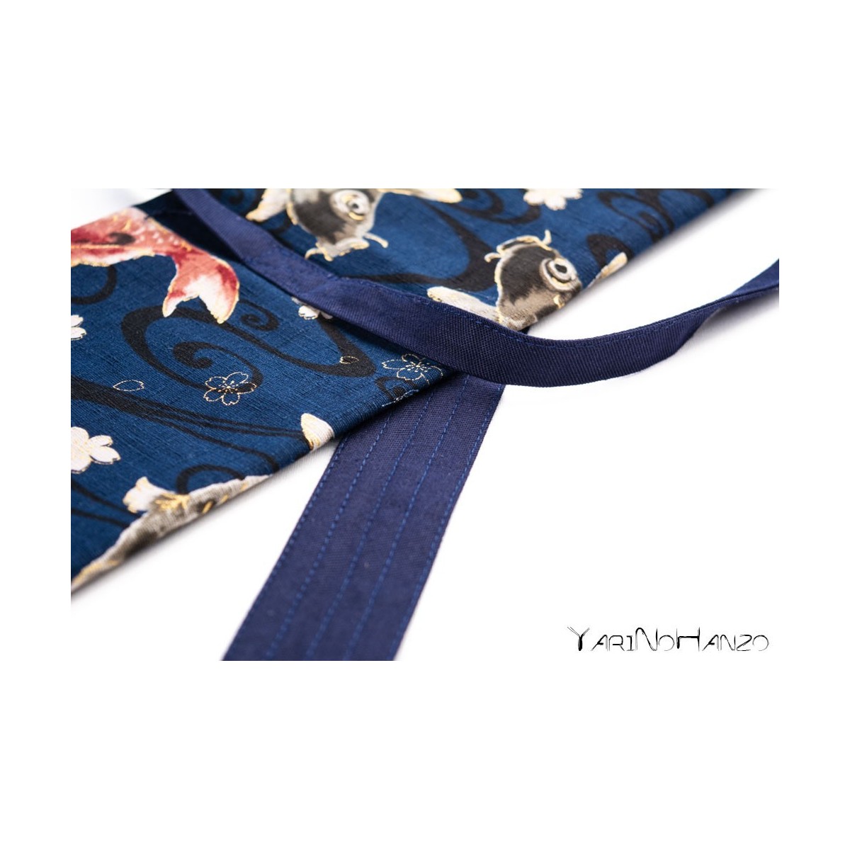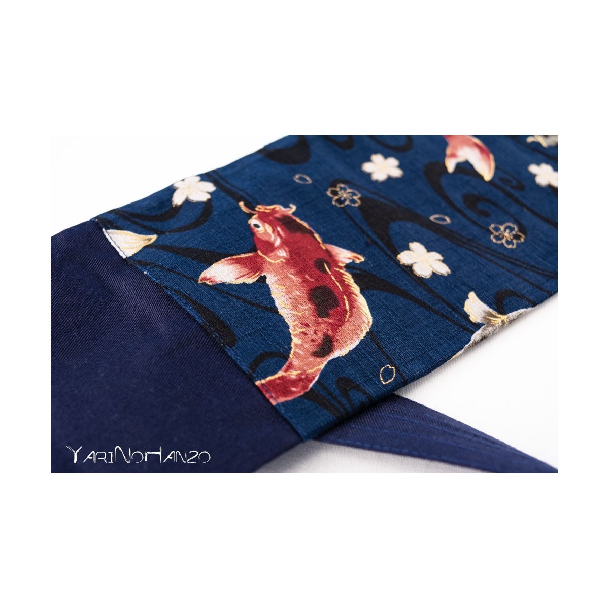 - Blue fabric 55% cotton / 45% polyester with inserts in 100% Japanese cotton decorated in "Koi" (carp) blue colour