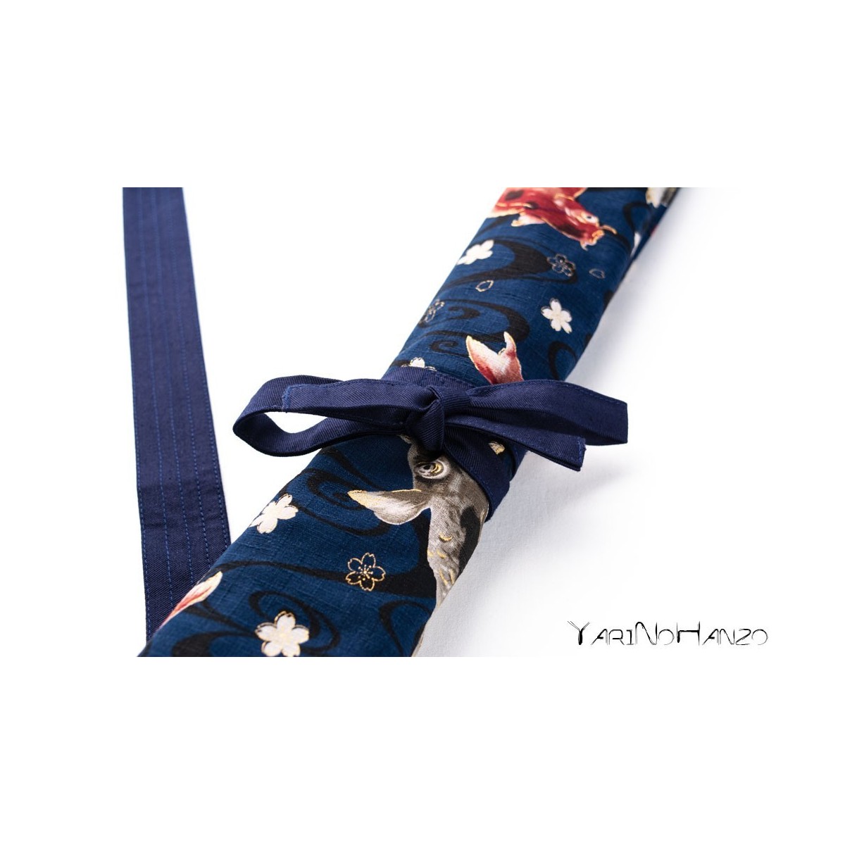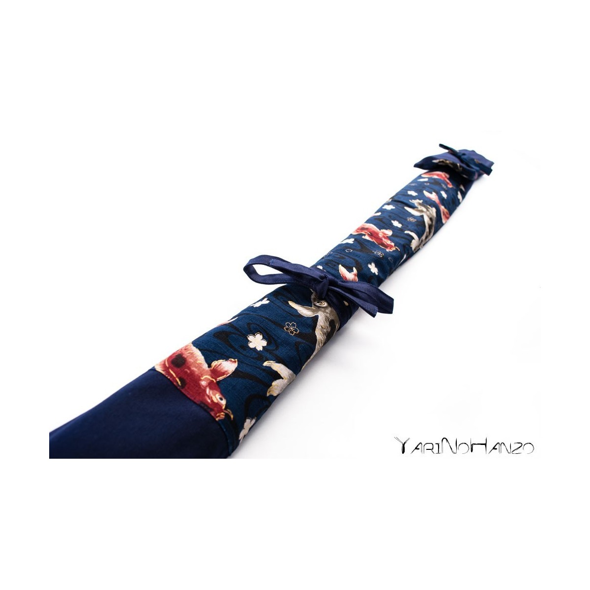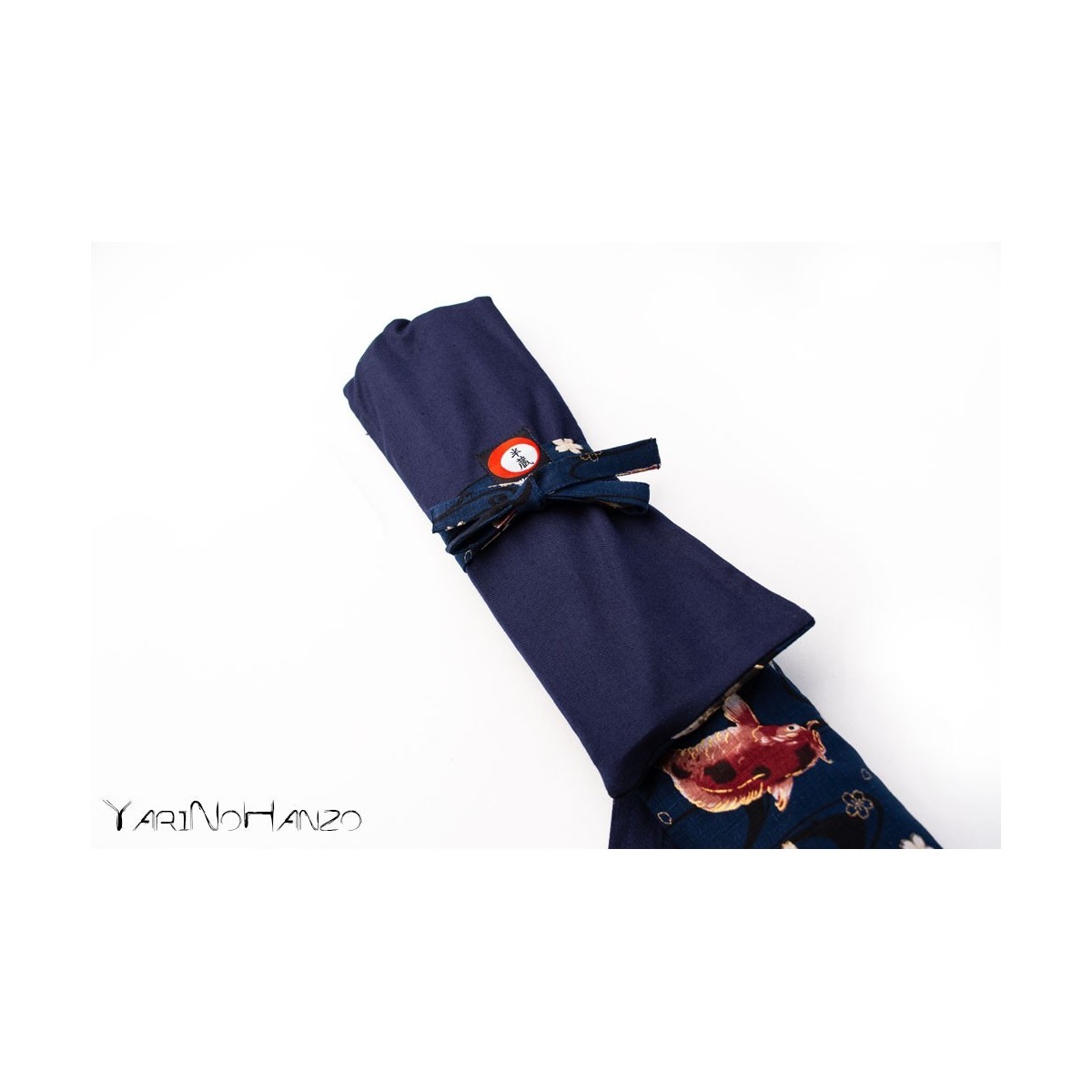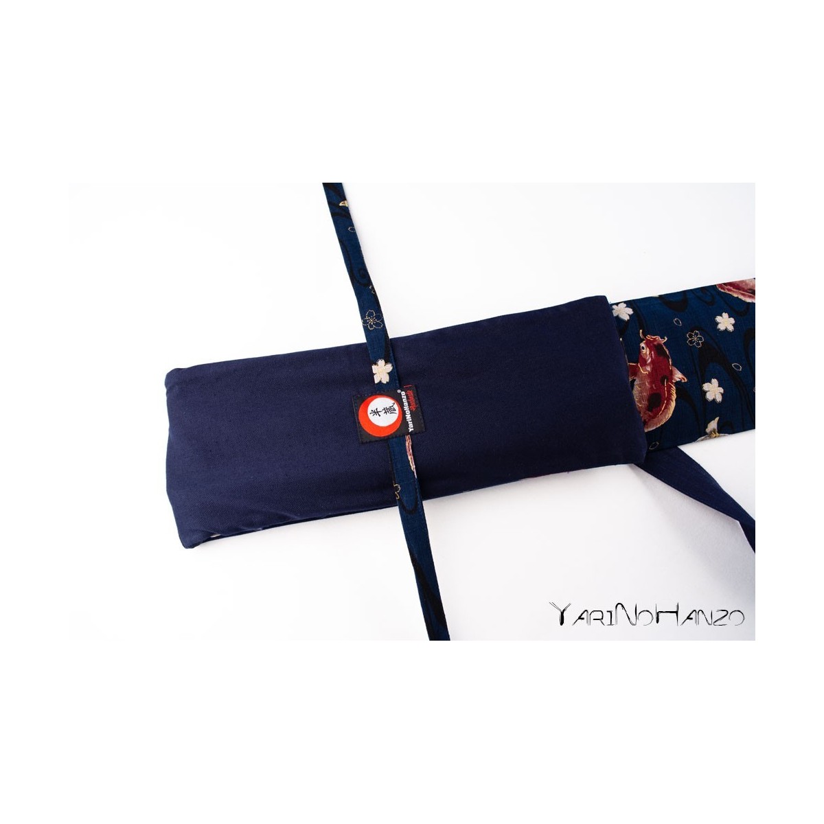 - Blue fabric 55% cotton / 45% polyester with inserts in 100% Japanese cotton decorated in "Koi" (carp) blue colour