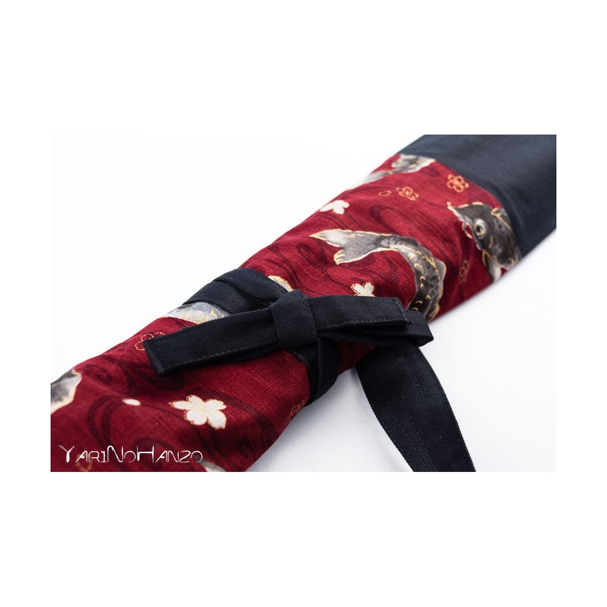 - Red fabric 55% cotton / 45% polyester with inserts in 100% Japanese cotton decorated in "Koi" (carp) red colour