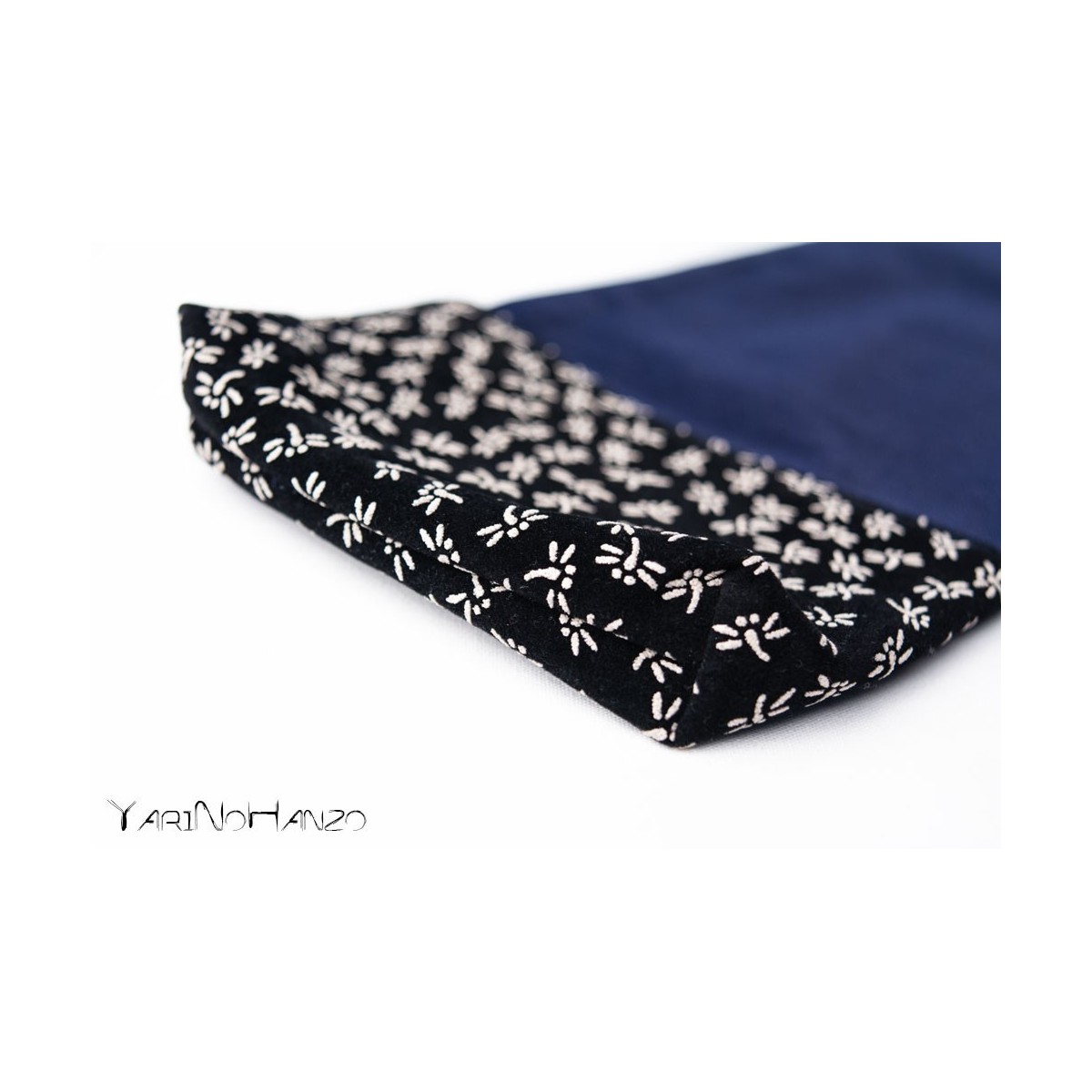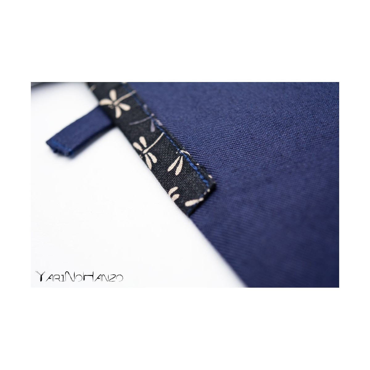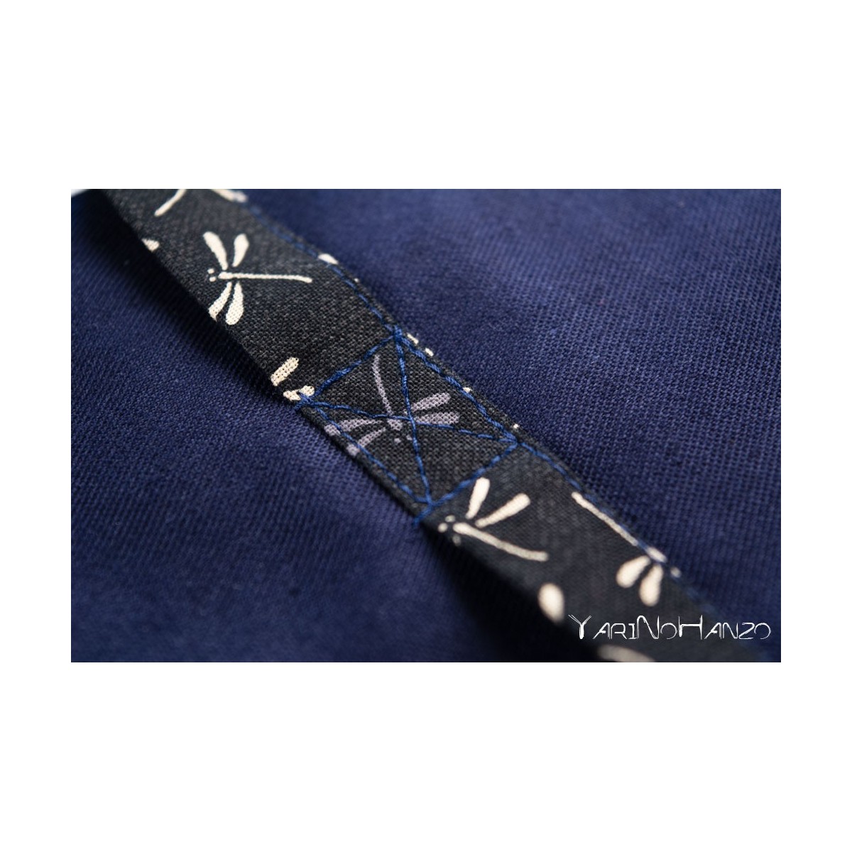 - Blue fabric in 55% cotton / 45% polyester with inserts in 100% Japanese cotton decorated in "Tombo" style